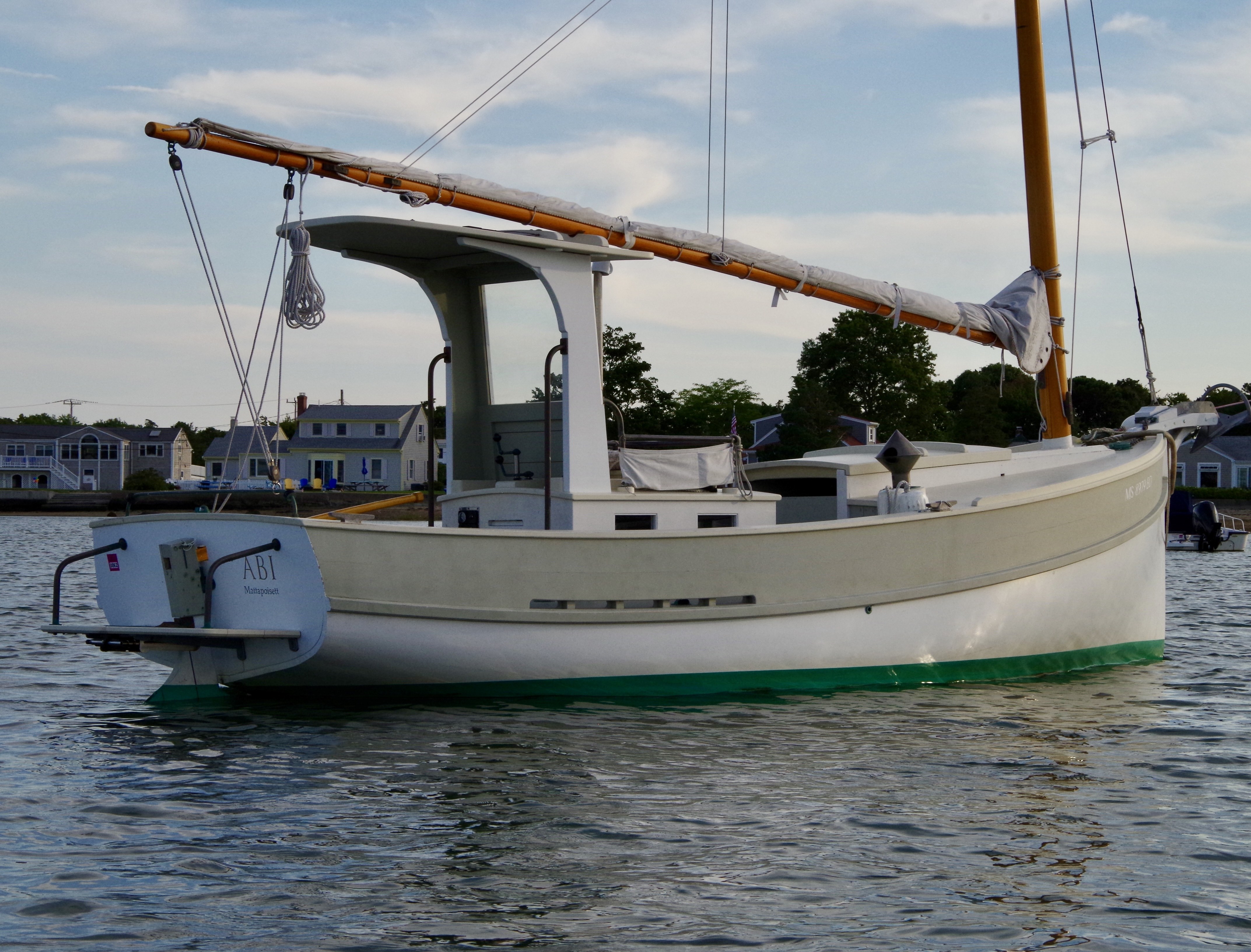 Built about 8 years ago now, in an old mill space in New Bedford Ma. Abi grew out of a shared dream my dad and I had for a small boat that could carry us to the islands and off shore get aways that we long for in the summer months here in New England.
