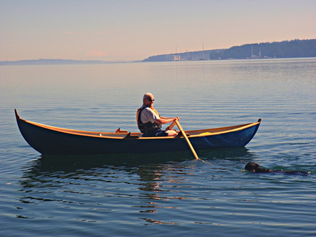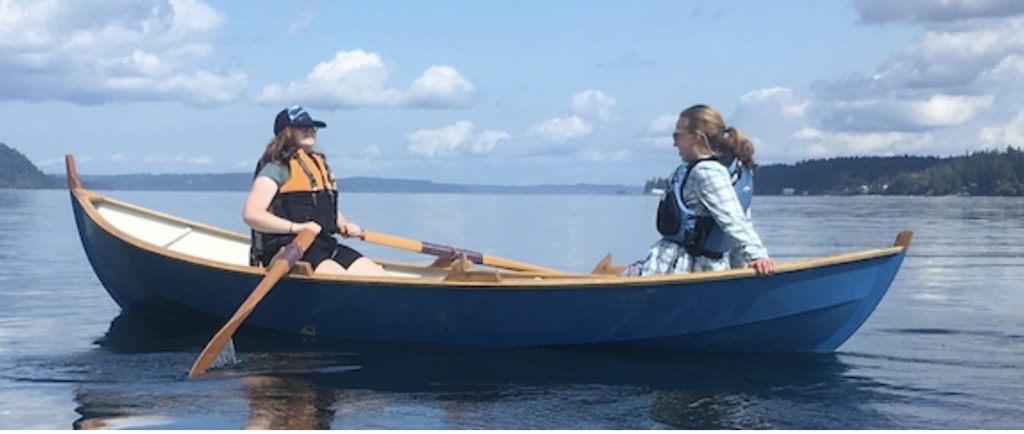 Iain Oughtred’s Elf is his version of an ancient Norwegian faering, adapted for marine plywood planks using modern construction methods. Oughtred had studied færings for over 20 years before he felt he could capture the beauty and functionality of these boats in a practical design. This one is stitch-and-glue per Ian’s drawings.