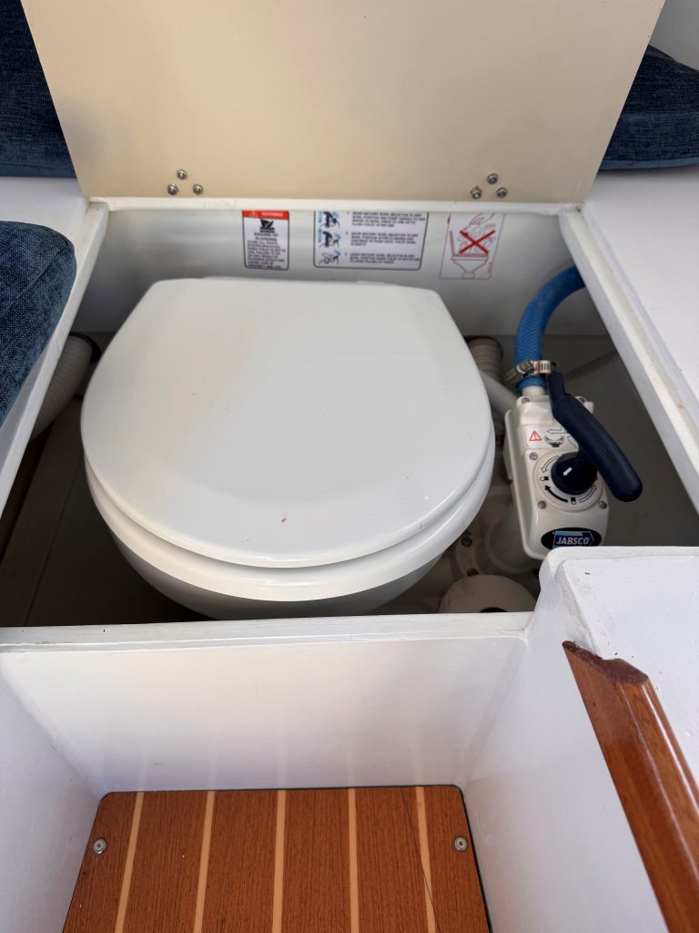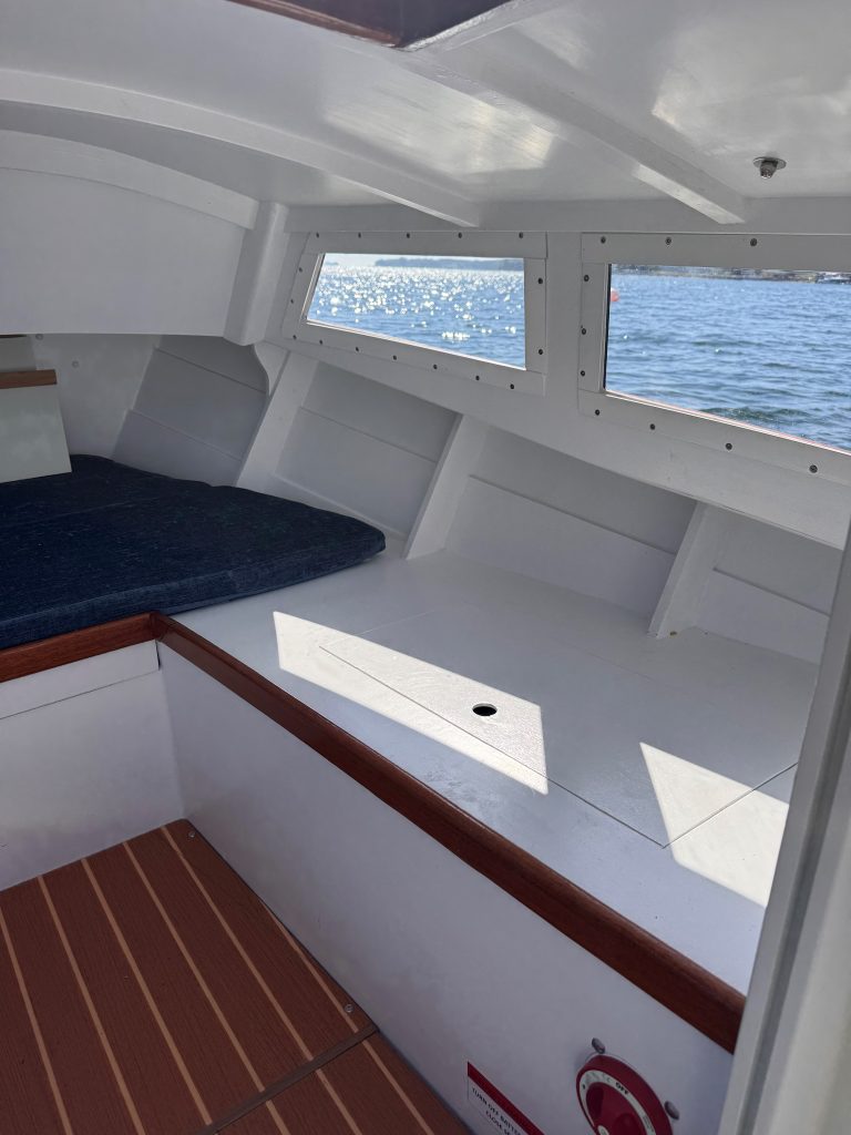 Large cockpit with outboard in well. Cabin with two berths and a marine toilet and holding tankSuitable for semi-protected waters