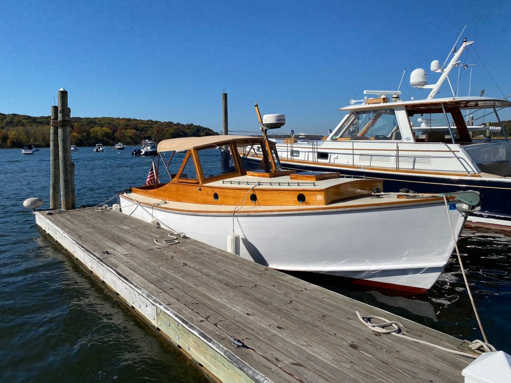 This beautiful, seaworthy head turner of a cruising boat was designed and built by the renowned wooden boat builder, Gannon and Benjamin. Equipped with a BMW, Yanmar marine 260-hp engine she cruises at 16 knots with a range of over 200 miles. Below deck are sleeping accommodations for two, with sink, stove, refrigerator, water heater and head. She is the perfect cruising boat for an adventurous couple who want comfort, safety and style. Her spacious cockpit is ideal for spending a day on the water with friends and family. She is the winner of 2024 Best in Show “Owner Maintained Power Boat.” “ILONA” comes with her 8′ lapstrake, rowing/sailing tender, cradled on the stern. $189,000. Norwalk, CT.