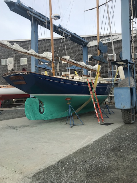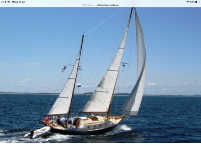 Nasket is a Sam Crocker design (#227) with tweaks by builder Joel White at the Brooklin Boatyard Nasket has a Cedar strip planked 1 1/4 inch square hull over oak frames and oak Backbone. Bronze screw fastened. Keel hung rudder. 3300 lb lead ballast keel. Perkins M-50 diesel 48 hp engine.