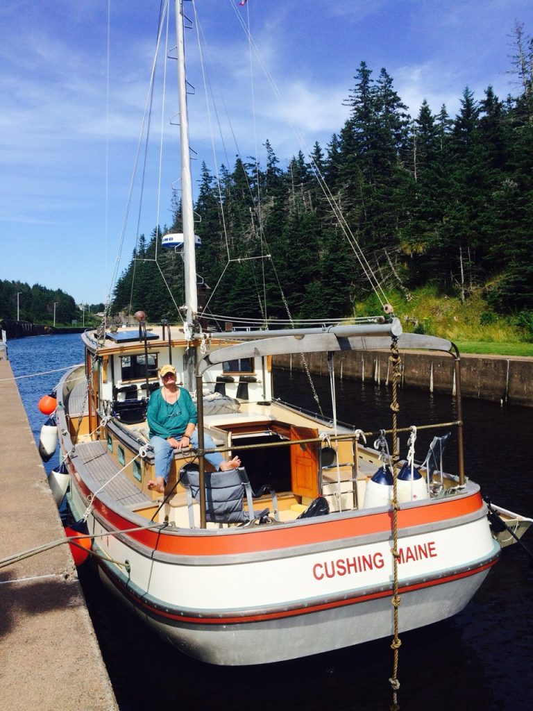 SERIANNA has proven to be an especially able & comfortable cruising vessel for my late wife Paula & myself. She has an easy motion in a seaway. Our many cruises include Down East along the Maine Coast; numerous runs to the Nova Scotia coast, and in 2016 we ran her to Newfoundland and cruised the whole South Coast. SERIANNA’s topsides and the painted superstructure are all finished in Epifanes gloss (over the Clear Coat Epoxy sealing base on the vertical superstructure) & this stands up extremely well – requiring a fresh coat only about every 4th year. The aft deck & cabin roofs are sheathed with Dynel using epoxy resin, and Awlgrip finish was applied. All exterior Teak is vertical grain left bare and has weathered nicely. This greatly cuts down on maintenance vs if the teak had been finished in gloss varnish.