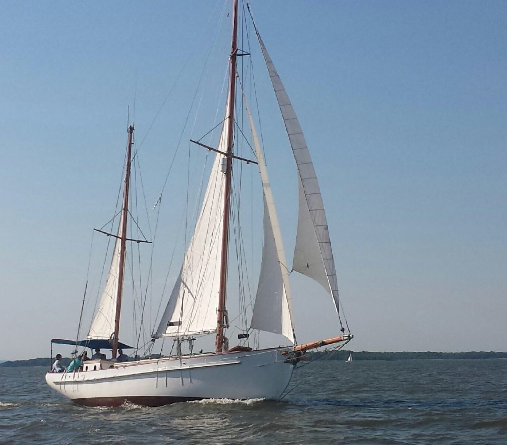 John Alden design #772A. This ketch was built in Cristobal, Panama. She was built with IPE frames and Long leaf yellow pine planking and fastened with Monal.