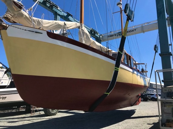 Sails well. Main and jib serviceable older sails, mizzen and staysail very good newer sails. Masts are beautiful old growth Douglas fir installed in the 1980s when the rig was changed from gaff to increase sail area. All spars and rigging parts are in great condition.