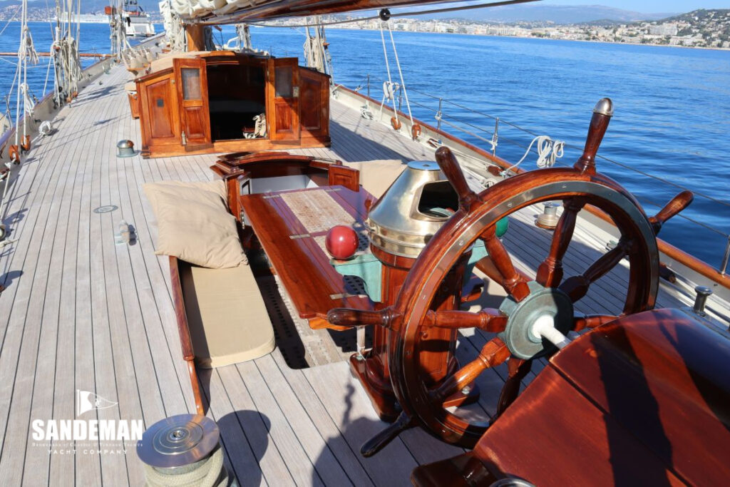 The re-creation of William Fife’s beautiful 1901 schooner SUNSHINE in Myanmar a century after the original build at Fairlie is one of the great romances of the classic yacht revival. The result is a thoroughly practical classic yacht, faithfully replicating William Fife III’s sweet and efficient lines, deck layout and rig design, but with an easily maintained steel hull designed and built under Lloyd’s supervision, and a modern interpretation in her beautifully hand crafted accommodation that offers both sociability and privacy. The whole retains the elegance of the past and evokes the great schooner era of the early 1900s. SUNSHINE is a yacht with huge personality. In present ownership she has been maintained to the standard demanded by both her provenance and commercial coding, and is ready to be thoroughly enjoyed.