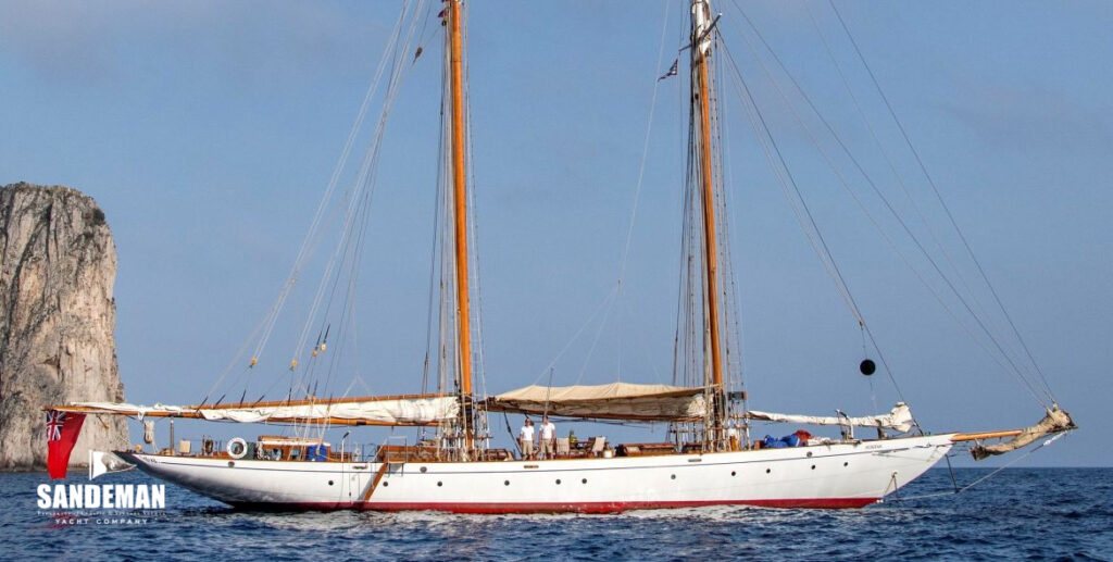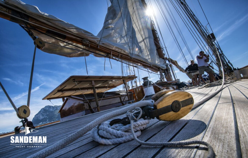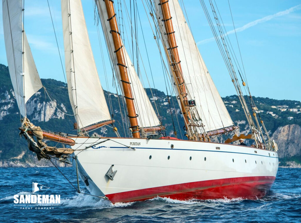 PURITAN is quite simply a legend. She beautifully carries before her the spirit of America’s ‘Gilded Age’, was one of the earliest participants in the ‘Classic Yacht Revival’, and has continued evangelistically to spread the word for over four decades, with alumni becoming key players; disciples even. Built from the highest grade of steel then available by a shipyard set up to build submarines for the US Navy – and infused with the DNA of some of the finest American schooners – the care that went into PURITAN’s design and build, her ease of sailing and motion, and her spacious yet intimate accommodations have always guaranteed lovers, even when her chips were seriously down in the late 1960s. Mediterranean-based for most of the past 30 years, PURITAN has been enjoyed since 2015 in current ownership as a successful MCA-coded charter yacht and summertime family cruiser – with her centreboard-up draft allowing access to anchorages and harbours other yachts of her size can’t reach.