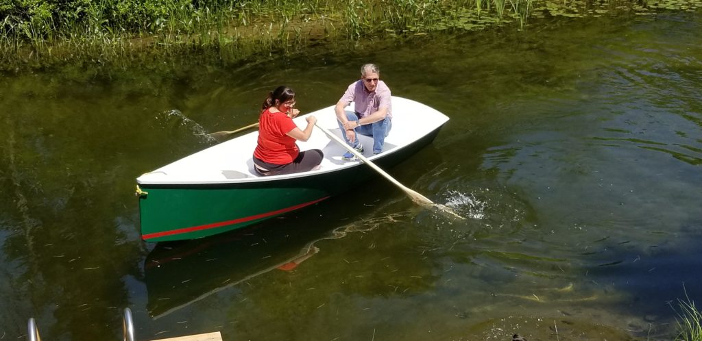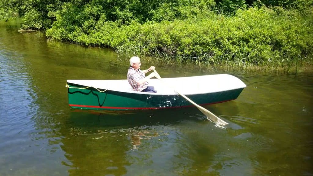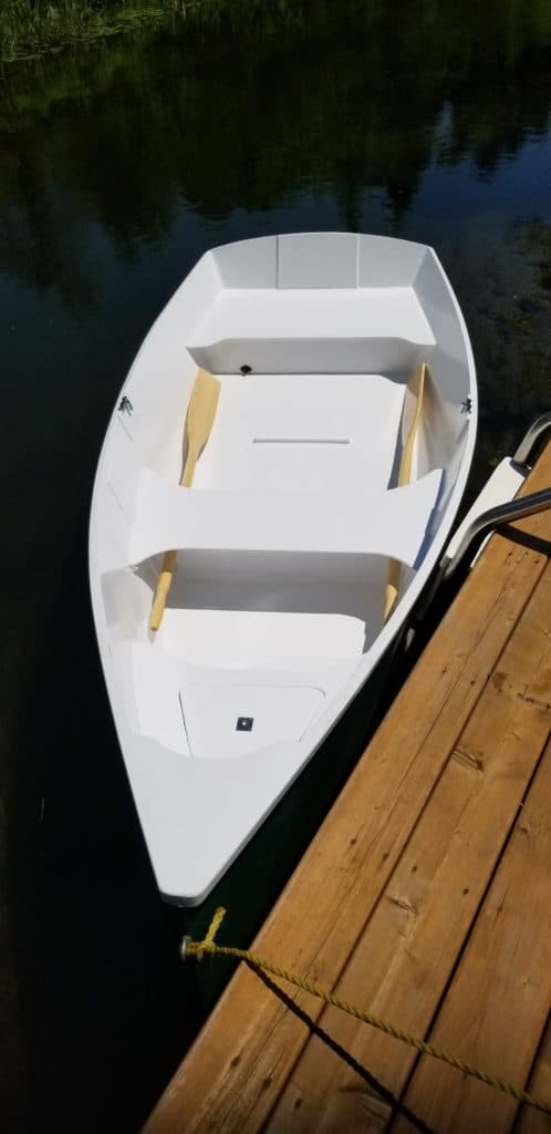 The Weekender 12′ is a pretty boat with classic lines and easy to move. A boat for 2 adults or 1 adult with 2 children. I built this boat in the spring of 2018 at the request of my sister who lives near Lac Mc Arthur in Val-des-Monts. Rowboat in 6mm marine plywood. 2 component polyurethane paint.