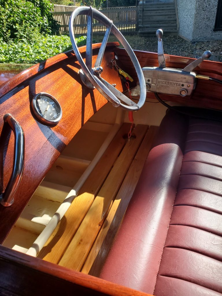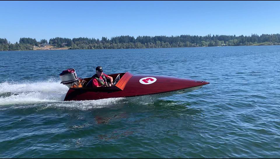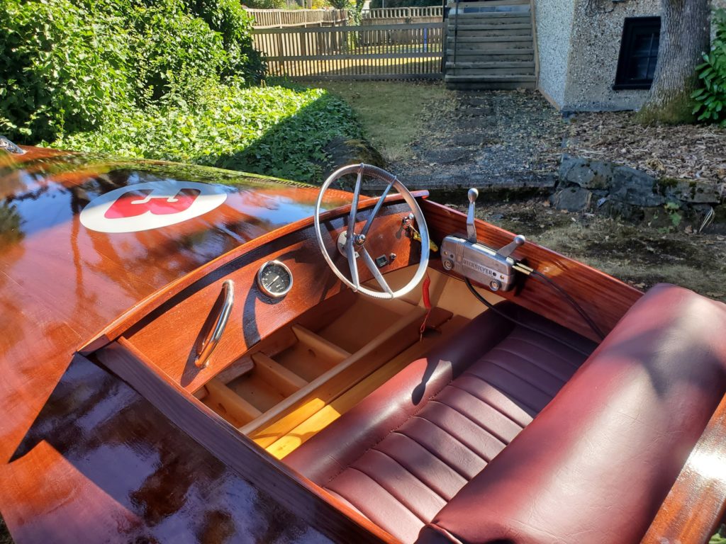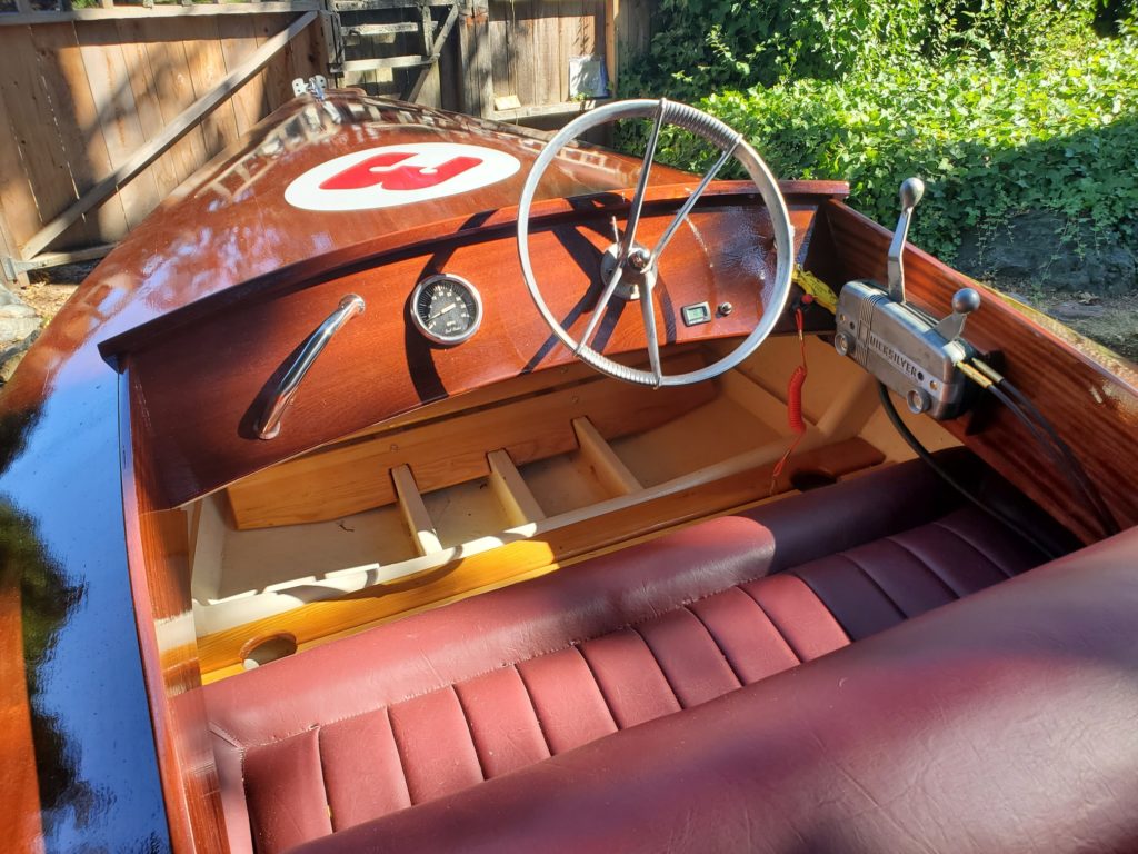 Boat plans are not available so the lines for Sizzler were developed using written descriptions and photographs obtained through the internet. It is believed that plans were lost in a fire which necessitated reconstruction with the help of a full sized wire frame half model built on the work bench. This allowed for recreation of full sized frames and eventual construction of the boat.