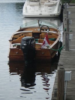 That left another hurdle: insurance. The first company wouldn’t touch it because it was a wooden boat. The second didn’t like the fact that it was “over horse power” and the third didn’t like the fact that my teen age children would be operating it. It turned out that this broker had something in common and I was able to convince him that my teenagers were wonderful responsible people. As long as it could not exceed 47 kilometres per hour he was happy. With my 4-bladed prop and me alone in the boat it will just do 47.1 kilometres per hour.
