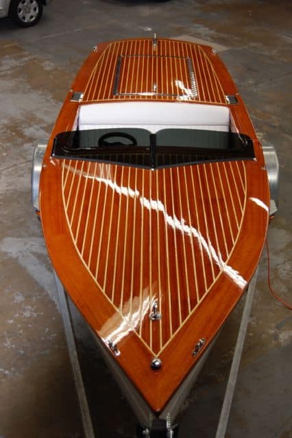 DUET is a 17′ Electric Runabout that really turns heads.Built in 2010, this beauty has evaded all drama and made lots of friends along the way. At that time I lived on a lake with a dock, I could only have a boat less than 17′, and electric only. I mostly went to the store or out to dinner with my wife cocktail cruising. DUET was named by my friend that played saxophone for PINK FLOYD for 10 years.