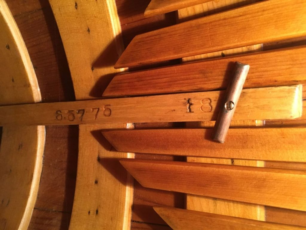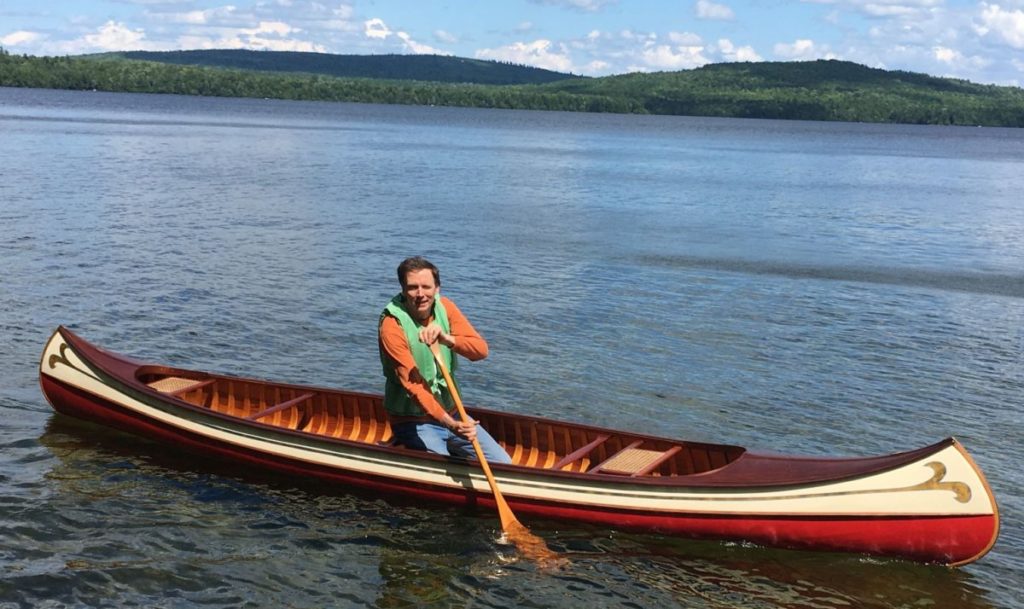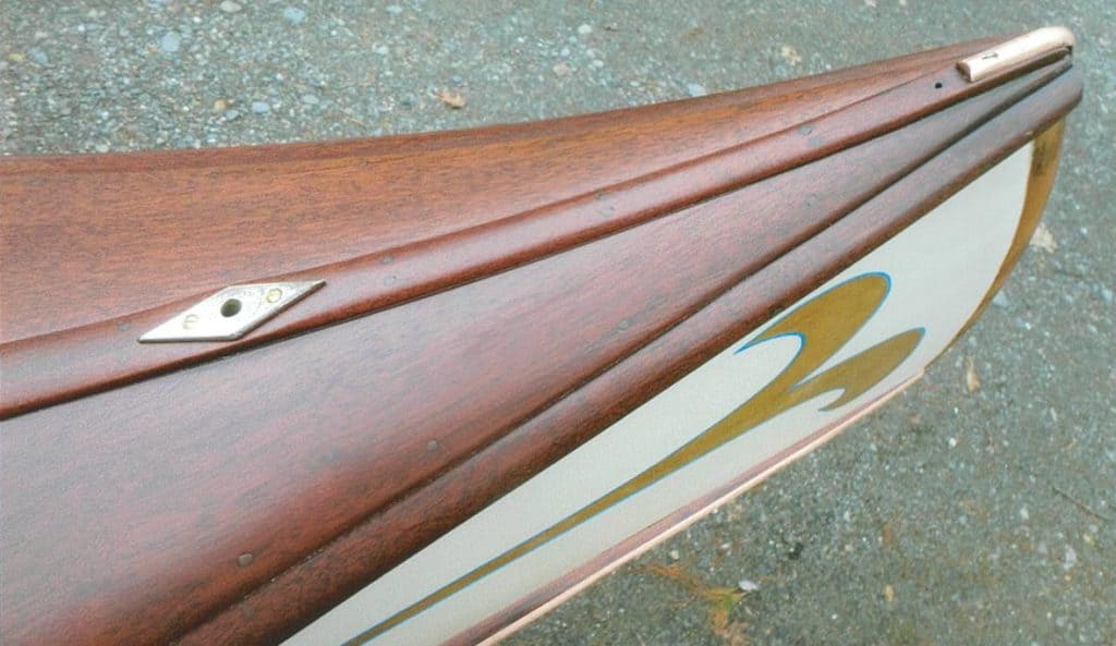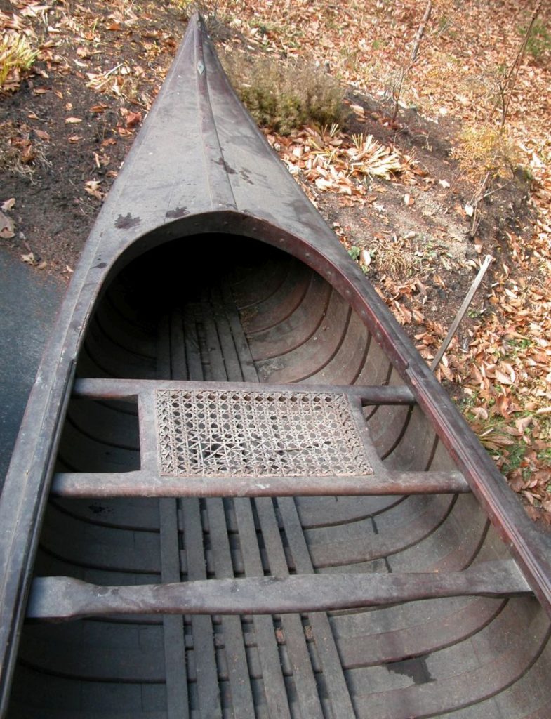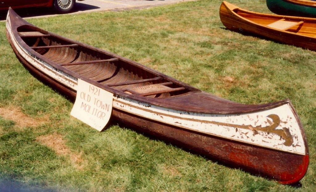 This is a Molitor model that the Old Town Canoe Company built in 1921. It appears to have been custom built for a Detroit dealer named Charles J. Molitor but ultimately shipped to Auburn, Maine. It is now able to be used again, a hundred years after it left the factory.