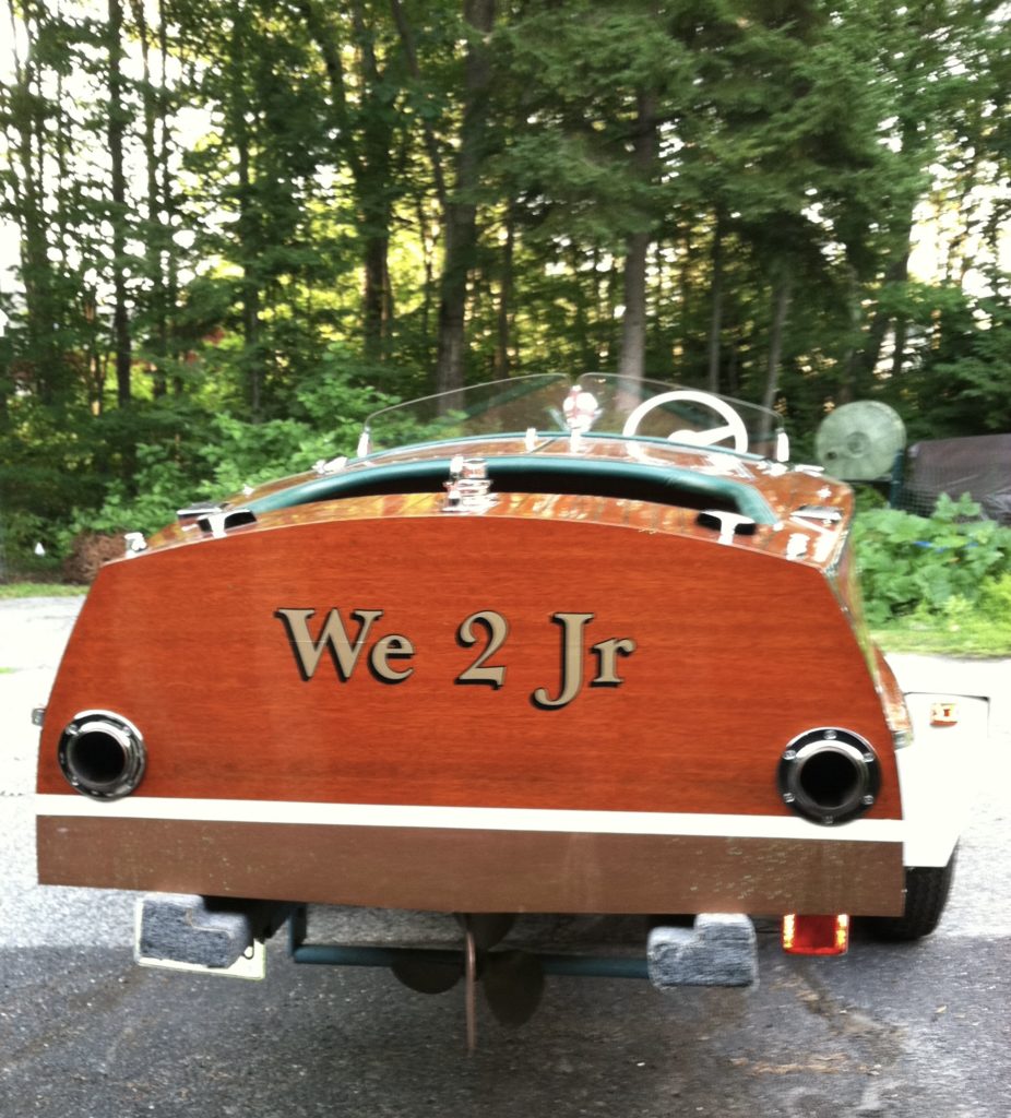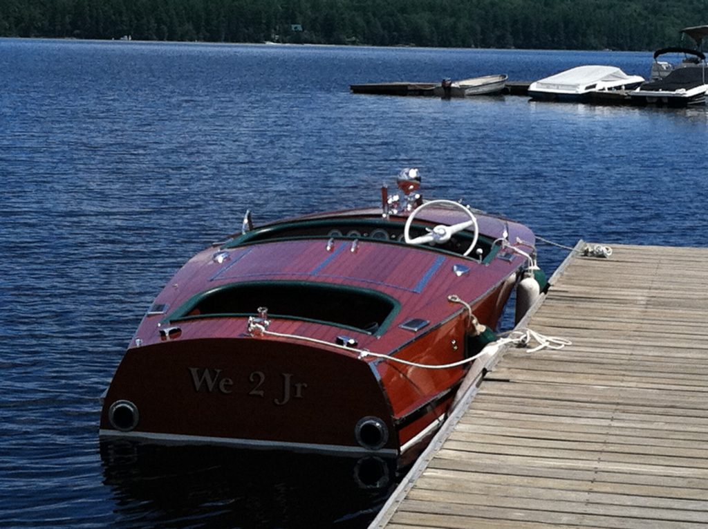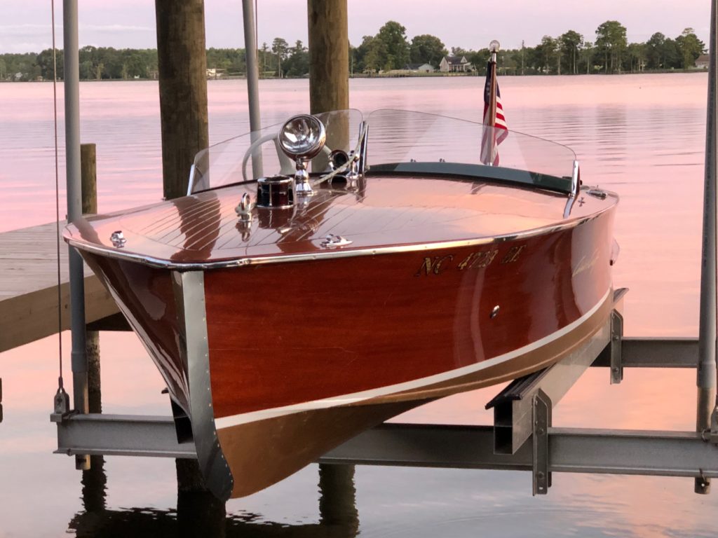 We 2 Jr. Has been in Katherine’s family since it was built in 1949. It is Chris Craft’s 19 foot racing runabout. Her Grandfather used it as a day boat and gentleman’s speed boat for some unsanctioned racing and fun on the rivers near Pittsburgh, PA. It was the tender to We 2, his live aboard Chris Craft cruiser. We 2 was lost in a flood but We 2 Jr. was saved. This runabout was renovated and repowered for its 50th birthday in 1999 and is still going strong after stints in upstate NY, Maine, and now in North Carolina.
