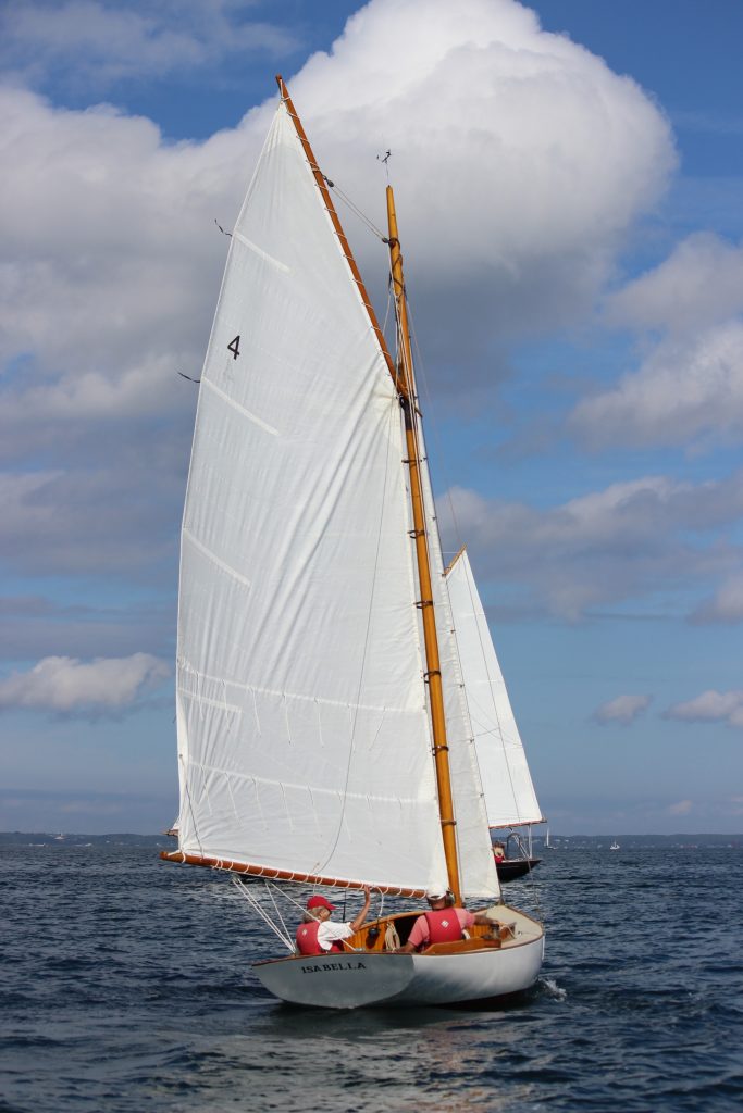 BLUE RHYTHM was the first Bella Class, created for a seasonal visitor in Vineyard Haven. The goal was a classic, easy-to-handle boat that was responsive in tight mooring fields and comfortable on the outer waters of Vineyard Haven Harbor. The 21-foot Bella is a simple, engine-free daysailer with a small cuddy cabin, two berths, and space for a picnic. With no electronics or gadgets, it’s a pure sailor’s boat, enjoyed by all ages. Her lead ballast keel and firm bilge sections provide stability and agility. The spacious cockpit seats four to five adults, with supportive white oak coamings. A round cabin trunk, oval port lights, and cambered cabin top complete the boat’s timeless profile. There are now 7 Bella’s around the northeast.