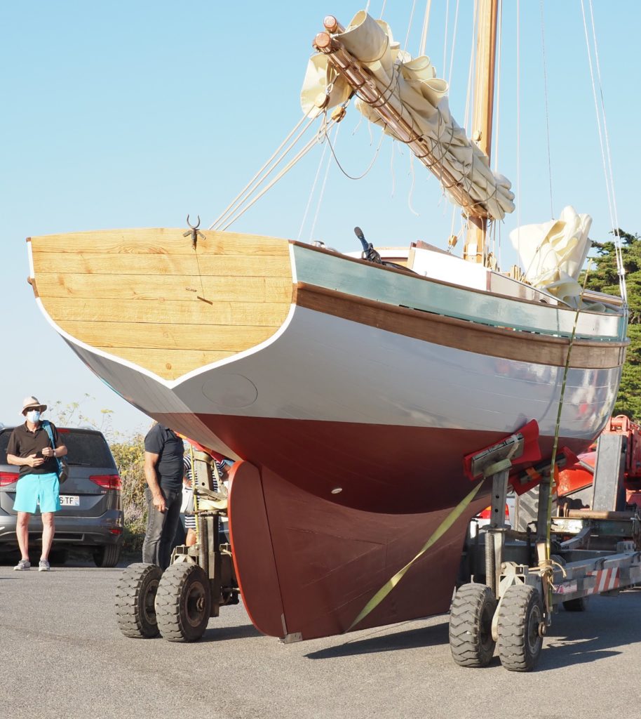 The Diben 23 (7 meters) is a recent construction by the French traditional wooden boat school Skol ar Mor. She was designed by Francois Vivier to be a contemporary version of the traditional Brittany cutter. The Diben 23 is plank on frame construction of Douglas fir on alternating laminated and steam-bent locust frames with a solid oak backbone, stem and transom. Decked with epoxy encapsulated marine plywood she also has a more contemporary self bailing cockpit with plenty of storage space and an outboard motor well under the aft deck. The spars are made of Oregon pine, and the rig is easy to strike as the mast is stepped on desk into a stainless steel tabernacle. Her bowsprit is retractable to permit access to some of the more congested ports. The Diben 23’s cabin has berths for 4 crew members, a space for a chemical WC, Icebox and stove all of which make her an ideal coastal cruiser and island hopper. The stability of her design and her sturdy construction also makes her thoroughly capable of channel crossings. She also comes with a pair of sea-legs for moorings in extreme tidal zones. All in all the Diben 23 has the seaworthiness and charm of her Brittany origins.Already a member? Log in herePhotos
