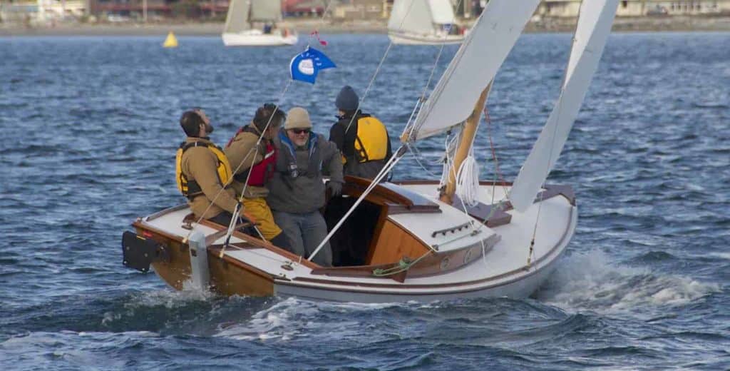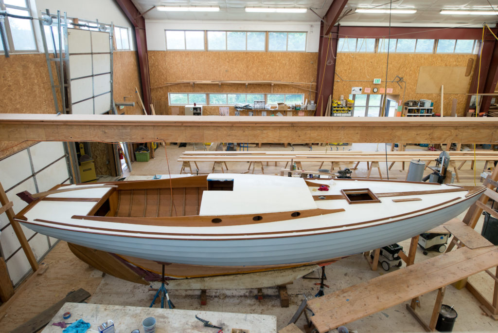 This Folkboat was completed by the Northwest School of Wooden Boatbuilding students in 2017. Construction includes Douglas Fir, Oak, and Purple Heart Stem