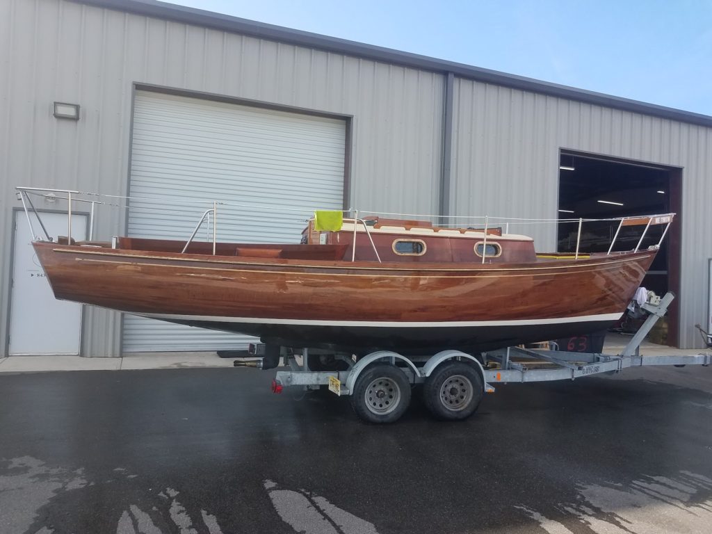One-of-a-kind, 26 foot all wood Hank Hinckley Great Harbor 26 day cruiser with new Nanni N.2 14 hp Diesel and new sail drive. Hull is three layers of Western Red Cedar capped with Honduran Mahogany and cloth with 20+ coats of clear Awlgrip, updated electronics, including new radar and chart/plotter. Easily solo sailed in even the lightest of winds, new retractable hydraulic keel, 75 hours on Nanni engine, , two cylinder diesel and new sail drive the combination of which pushes Joy at a good 7 knots. Joy is a combination day sailor/coastal cruiser that draws 13″ with keel up and 4’10” with keel down. She sleeps two in the forward v-berth and 2 in 1/4 berths, has electric stove, sink, head, and comfortable, dry cockpit. Bottom has been sanded and repainted, all bright work is in tip top shape, main and jib recently professionally cleaned and in excellent condition including appropriate canvas work. This boat is a custom, hand built work of art that is listed by its owner. Since her launch, Joy has had only two very caring owners the first of which sailed her in and around the waters of Southwest Harbor, and the current owner sails her in the waters of Little Egg Harbor Bay in New Jersey, and along the coast of the mid-Atlantic States. She spends her winters months in a temperature controlled boat house. Currently listed for $99,000 but recent downsizing and pending sale of home forces owner to qualify price: “OR BEST OFFER”