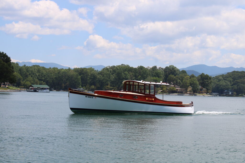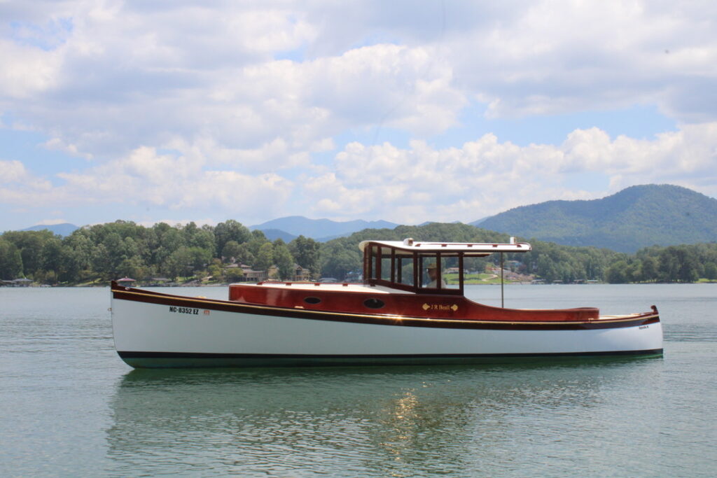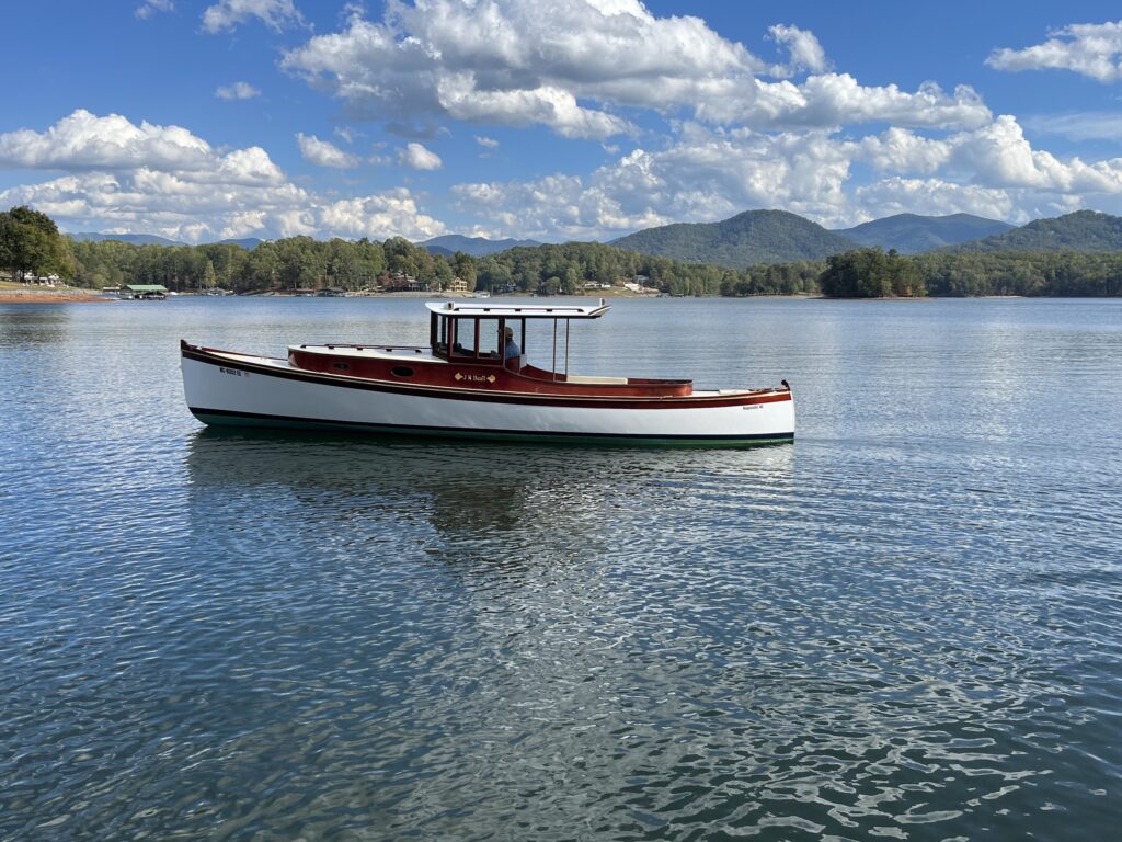I began to focus on electric propulsion only after starting the project. Adding another fossil fuel vehicle was unappealing, and this easy-to-push-through-the-water hull seemed to cry out for electric drive, I use it on Lake Chatuge, a TVA lake in western North Carolina where I live, for outings of only a few hours at a time.