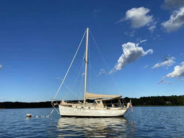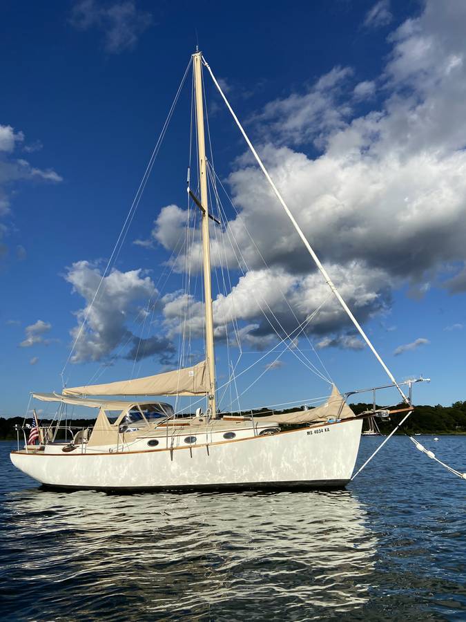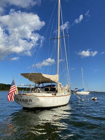 RISSA is one of Peter Legnos’s modern takes on a classic Noank sloop. The Mystic 30’s are cutter rigged with above the waterline ascetics of a classic 19th century work boat, and a modern coastal cruising fin keel underbody. Beautiful shear, classical derrière, an almost catboat like beam, and sharp entry bow and bowsprit are some of the attributes of the design. The interior has 6’ 3” headroom, and a hidden full water closet under the companion way steps, and sleeps 4 comfortably. The fit and Finish is very high end for the era with beautiful wood work accents, deck prisms for light, and sliding pocket doors for the forward cabin. RISSA has a cozy fireplace for those chilly nights on the mooring or your favorite anchorage.Already a member? Log in herePhotos