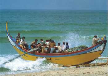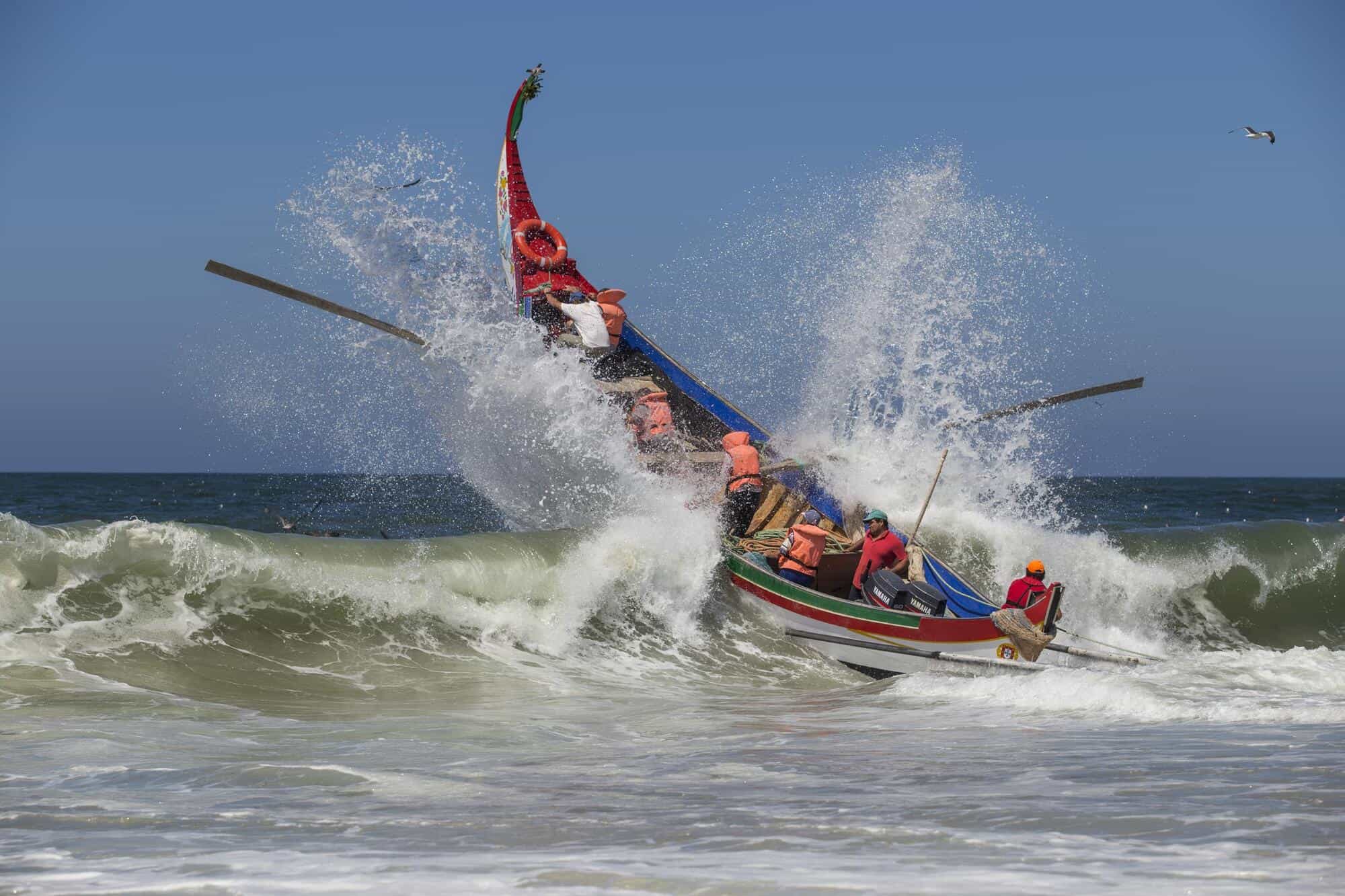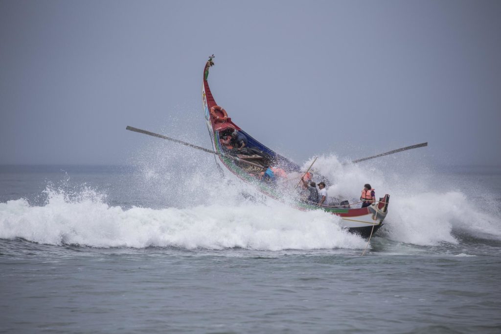 Xavega, is atlantic coast tradicional fishing boat. Used in the north of Portugal, made of pine tree wood, long around 12 to 18 meters. Design to sail the breaking waves on the beach. Traditionally powered by 2 or 4 manual rows. The boat makes a circular trip launching the surrounding nets, later pulled to the beach, with a retaining bag for the fishes. Also the the Xavega boat is in the end of the daily labor, pulled to the sandy beach by groups of cows. This is the boat traditional bringing the popular Portuguese Atlantic sardine. Locals and tourists love the delicious grilled sardines with lots of olive oil and peppers.Already a member? Log in herePhotos