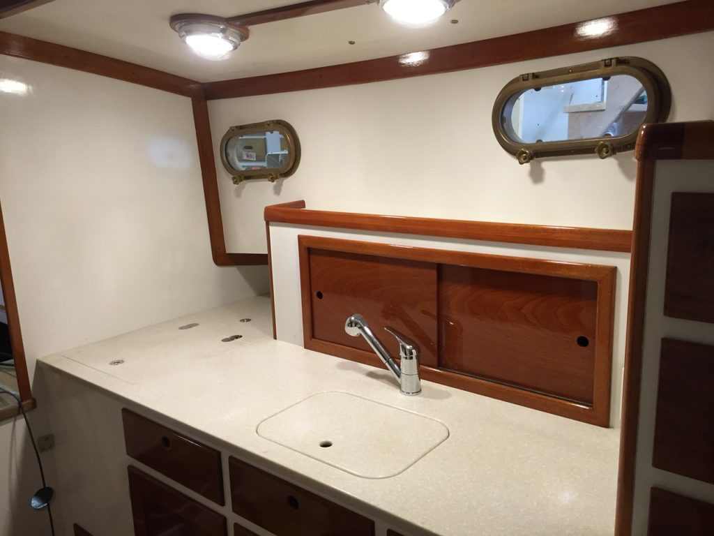 Huzzah was built by Newman & Gray in 1974 off the famous 36′ design of Bunker & Ellis. Originally, she was known as the Wendy Jean and lived the hard life of a commercial long-liner out of Gloucester MA frequently travelling as far as Georges Bank.At some point, the boat ended up back in the hands of the builder. At this point, she was in very rough shape. Newman & Gray gutted the boat while they awaited someone to come along with an interest in resurrecting the boat.