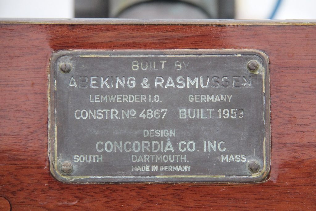the stories, and the experience within the surviving Concordia fleet. Built in 1953 in Lemwerder Germany by Abeking and Rasmussen, SOVEREIGN is a classic wooden yacht the Concordia Yawl 39, Hull # 15. The Concordia Yawl is a special class of wooden yawls and was designed by naval architect Raymond Hunt with input from Llewellyn and Waldo Howland. The Concordia Yawl was designed to withstand heavy wind and choppy waters making her the perfect sailboat for both racing and comfortable cruising. As one of the most enduring yachts designs in sailing history, she has collected as many trophies as any class in oceans racing history while proving that a winning boat can be as beautiful as it is comfortable to sail. There were 103 Concordia yawls built, of which all are still afloat, making the Concordia Yawl class the largest class of large one-design wooden sailboats. The Concordia boasts an oak keel, steam bent laminated oak frames, African mahogany planking, bright mahogany deck trim, bronze plank fastenings and galvanized iron keel bolts. The rigging consists of hollow spars, including a carbon fiber spinnaker pole, multiple sails, stainless steel rigging, galvanized tangs, bronze fittings and winches. The Concordia Yawl