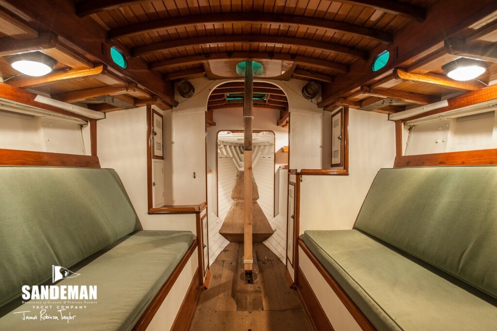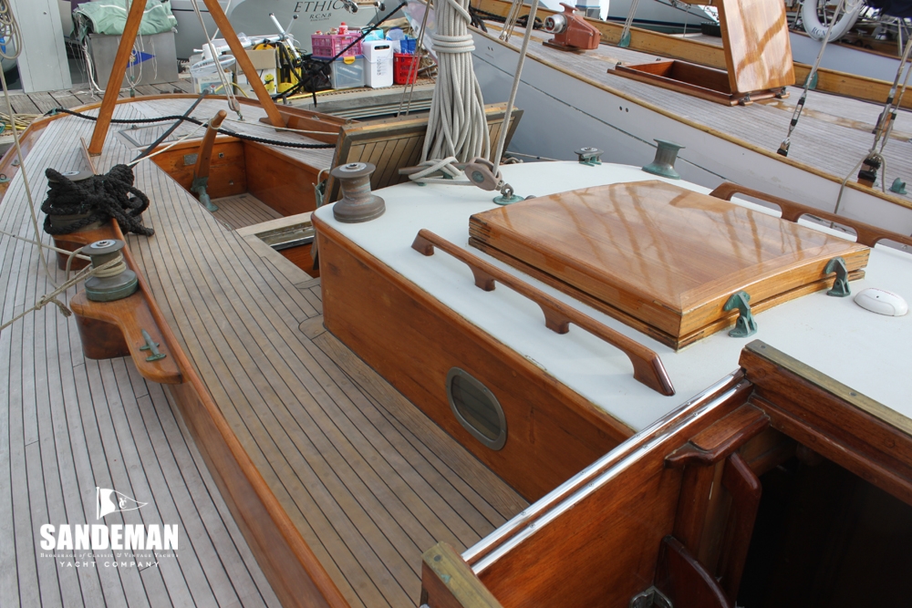 AMORITA has been sympathetically restored and successfully raced on the classic Med circuit with wins at Puig Vela Classica Barcelona in 2008 and 2015. So far ahead of her 1930s timeline, this is a design that can be easily raced by a family crew and also cruised as her designer intended. She is in our view one of very few yachts from this period that appears to be sailing at 10 knots tied to the dock! Fast and furious to sail, it is only if you study all her original detail and gorgeous simplicity along with her purity of line that the game is given away: vintage yacht designed before World War II.