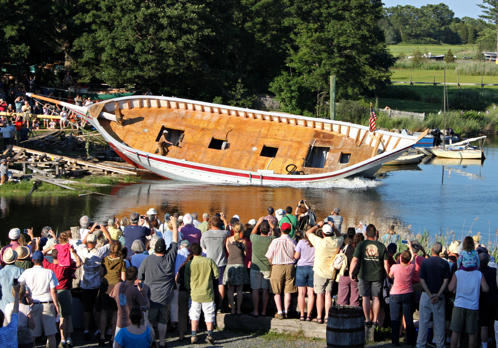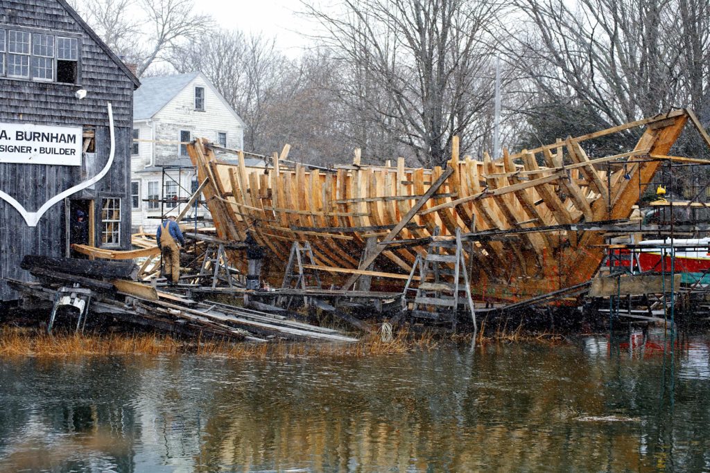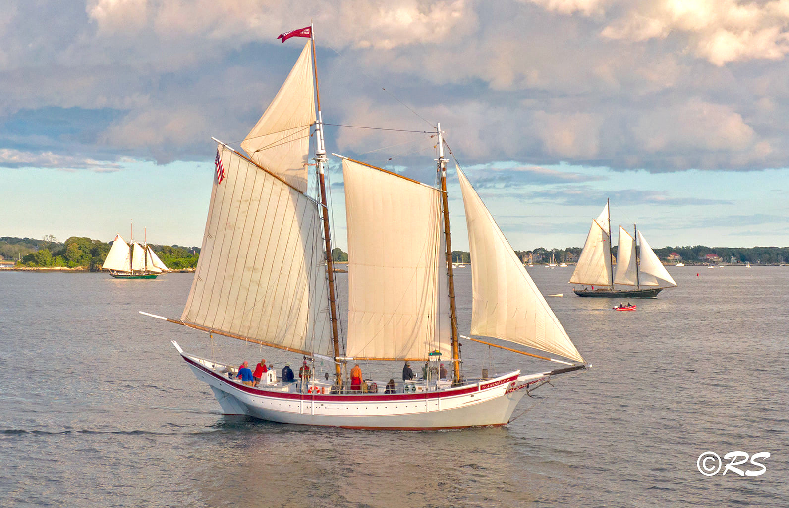 ARDELLE, named for my grandmother, is a Pinky Schooner I built with my family and friends over the winter of 2010-2011. Pinkies were a type of fishing vessel that developed in Essex from the smaller Chebacco boats in the early nineteenth century. Known for their pointed sterns and high swept bulwarks aft. At forty tons the Ardelle would have been about average size Pinky. While smaller than the later types of vessels used in the Gloucester fisheries, Pinkies were known for being well built, extremely seaworthy, and safe. Pinkies were fast and weatherly and fishing from them was done from the confines of the bulwarks over the rail.I based Ardelle’s her lines on the Pinky Maine built by Ebeneezer Burnham 1845. The Maine was the last Pinky built at Essex until I launched the Lewis H. Story in 1998. To make her suitable as a passenger vessel we only had to modify Ardelle’s design slightly. We removed the step in her foredeck and carried her raised fretboard all the way aft both to avoid the tripping hazard and make her safer with more reserve buoyancy. We put in subdivision bulkheads for damage control. We installed a small diesel engine for when we need it and made the rudder slightly larger than it would have been on an all sail vessel to compensate for the aperture for the propeller.