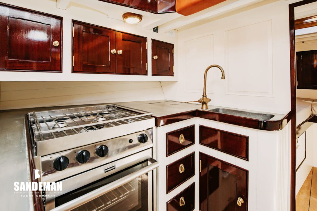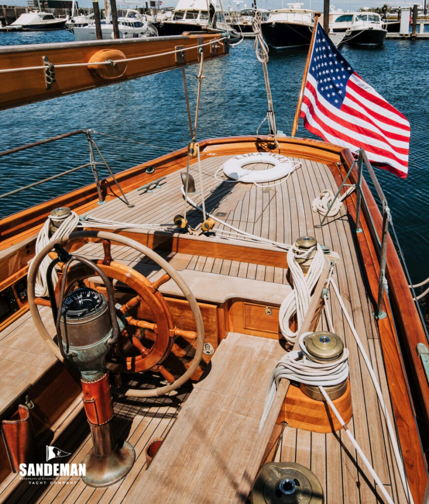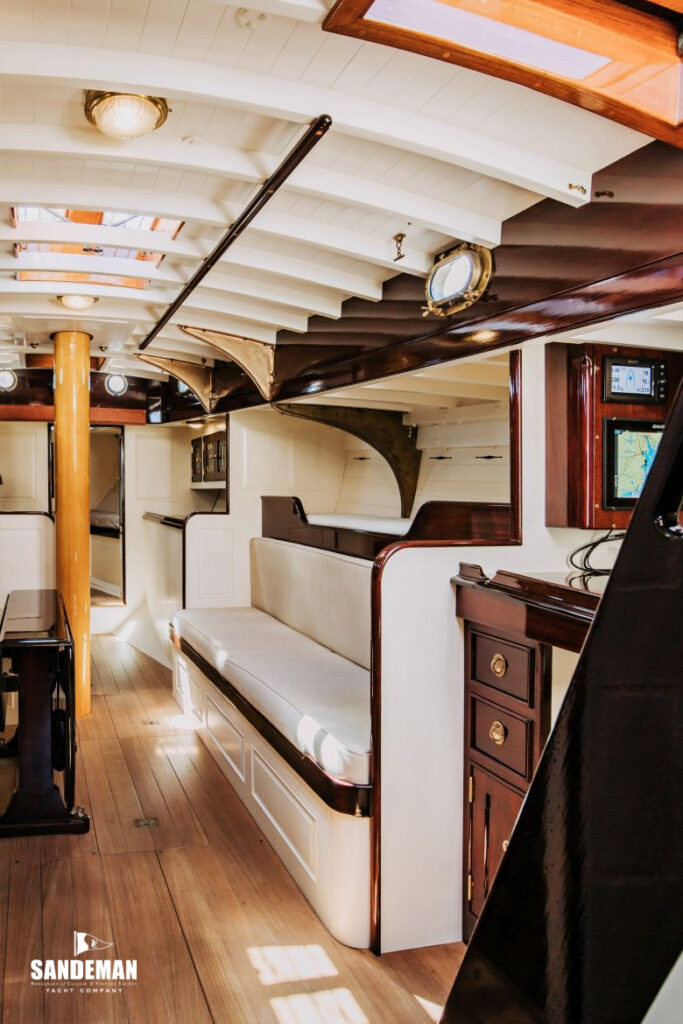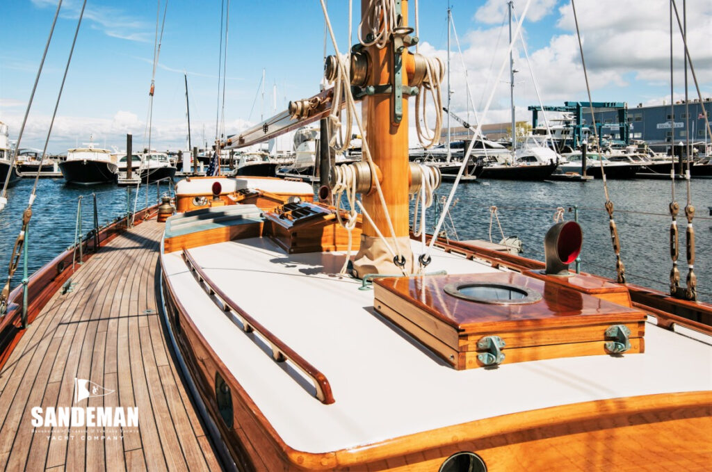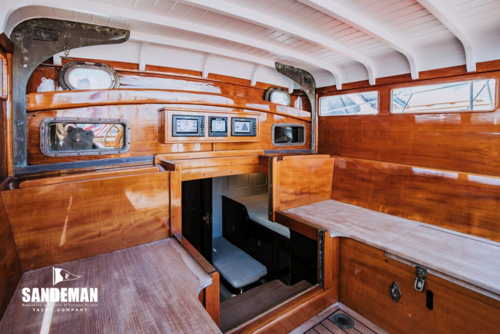 Philip Rhodes was already a very clever designer of beautiful, fast and seakindly yachts in 1936, but it was KIRAWAN’s astonishing victory straight out the box in that year’s stormy Newport-Bermuda Race that gained him his big break internationally, and assured KIRAWAN’s long lasting fame. After a second life of hobnobbing with Hollywood and racing the Pacific classics, eventually fame alone almost wasn’t enough to save this striking yacht from a horrible end. Thankfully a man with a plan caught her just in time. In 2017 she entered a period of deep restoration funded by her present owner and executed at Portsmouth RI by Joe Loughborough’s experienced artisans. The aim: to enjoy with friends the re-introduction of KIRAWAN to some of her old racecourses. KIRAWAN has ticked off the 2022 Newport-Bermuda race, and can be a potent and head-turning force on any of the classic circuits: a supremely comfortable, able – and famous – classic family cruiser-racer.OWNER’S COMMENTS