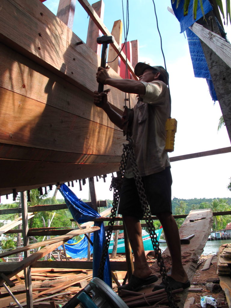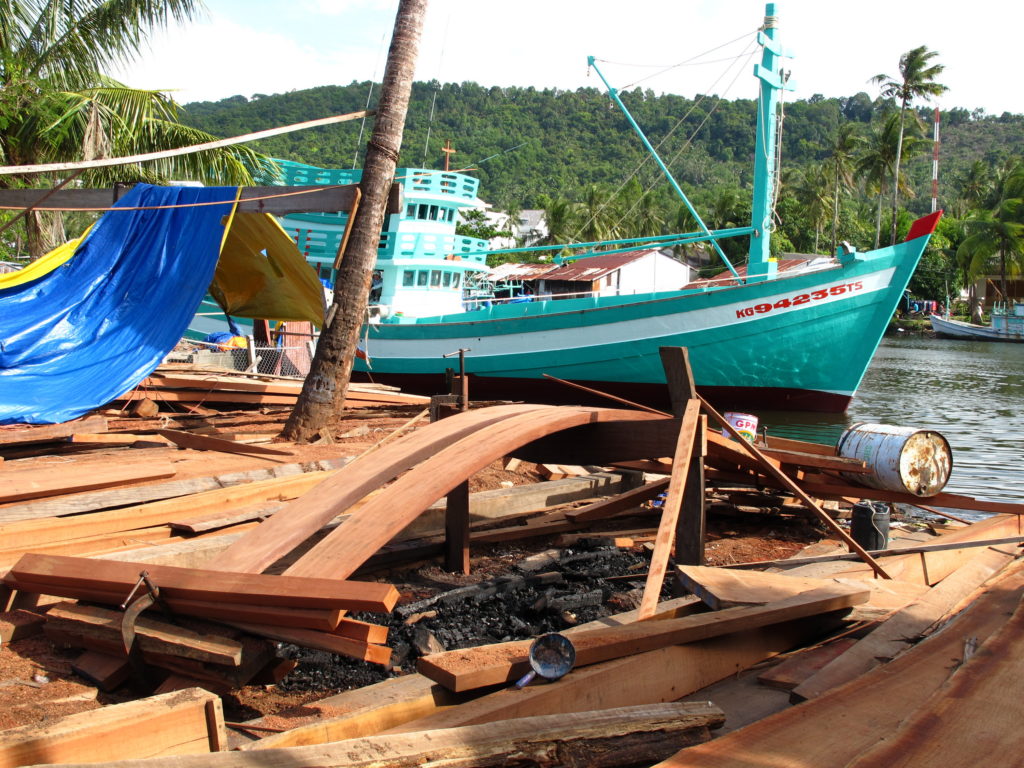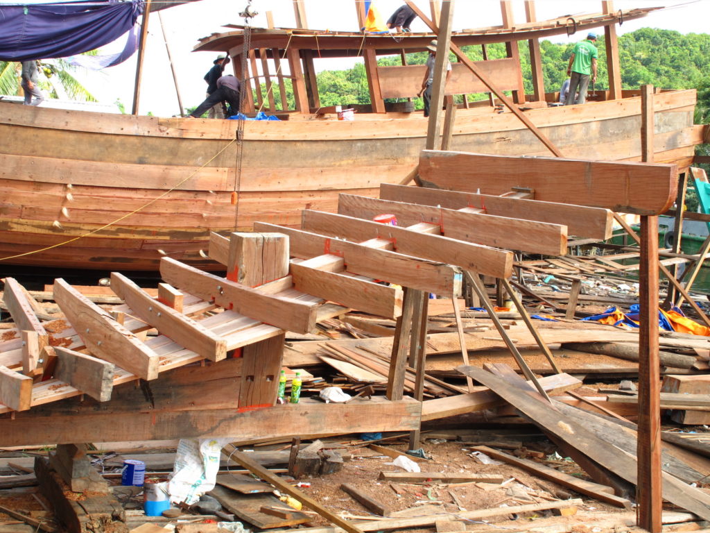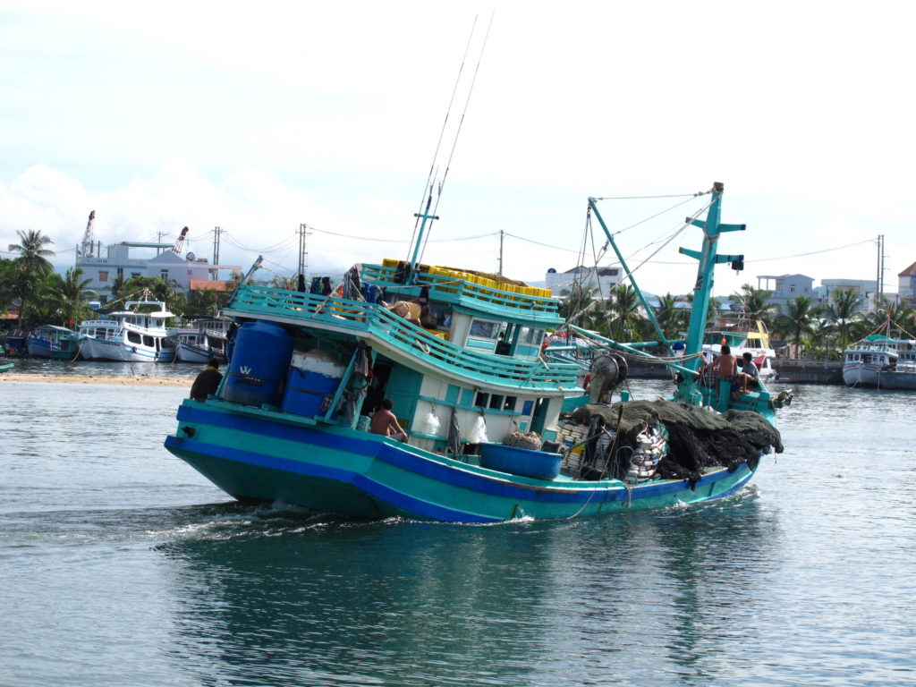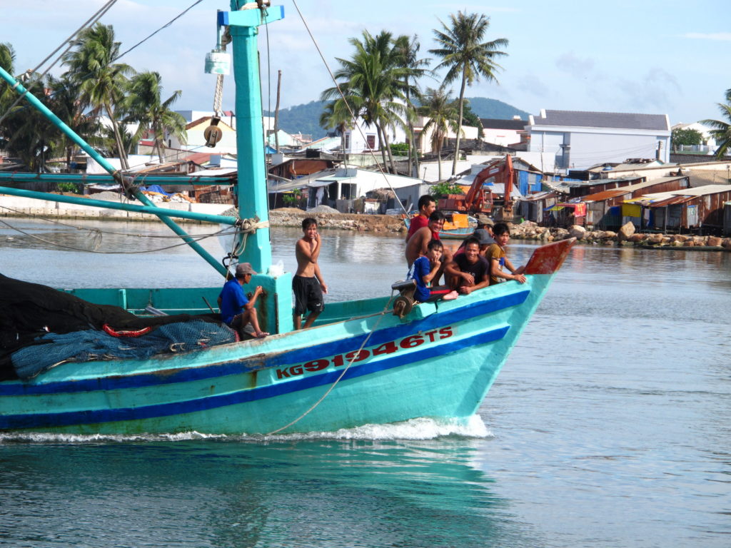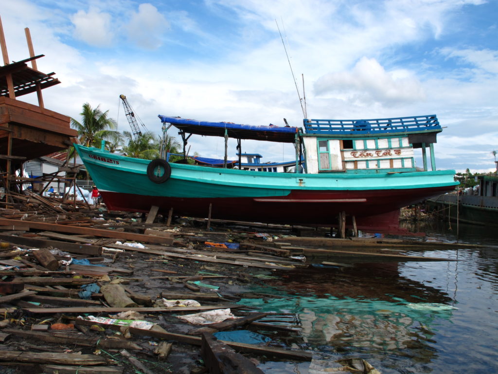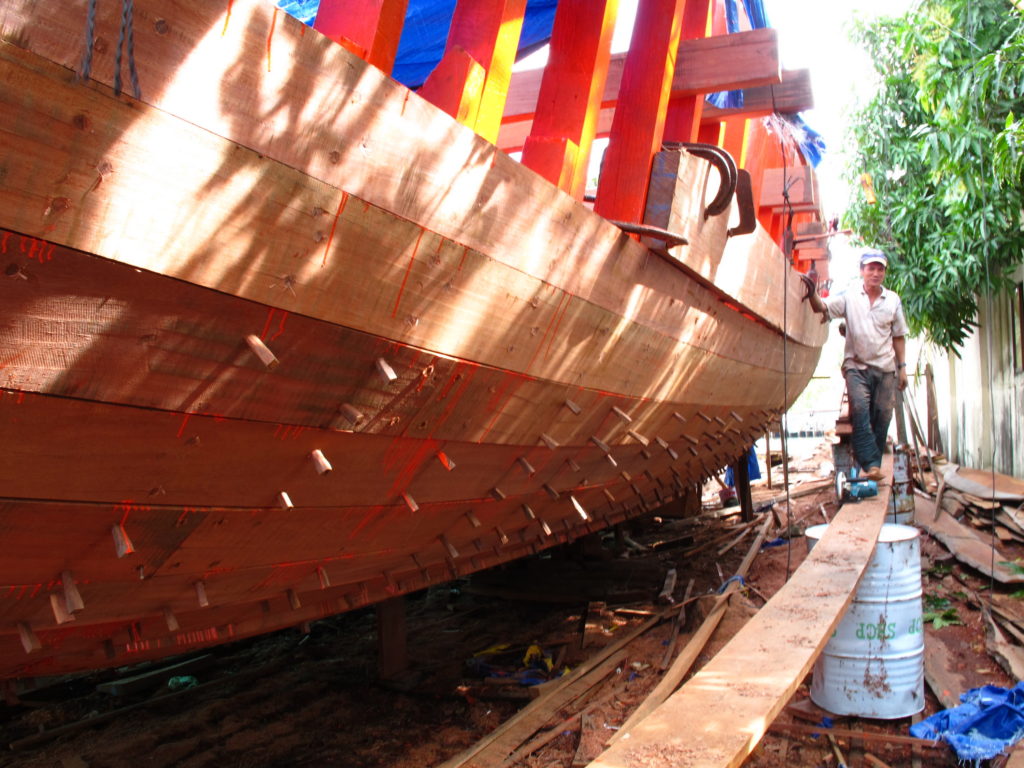 Phu Quoc Island seine boats are a distinctive Vietnamese fishing boat found along the Gulf of Thailand coast, particularly fishing from the island harbor at Duong Dong. They differ from typical Vietnamese motor fishing vessels, built more for speed than carrying capacity, they are shallower, have easy bilges and long flat runs aft. They are very well built, with hardwood timber, galvanized bolts for bolted connections, but are largely fastened with trunnels. Unlike most Vietnamese fishing boats this size, their frames are tapered from the floor timbers up to the frame heads, for lightness. These days, after caulking they are routinely covered with a heavy layer of fiberglass (mat and polyester resin) from their rails on down, the whole exterior of the hull. They fish for anchovies and deliver their catches directly to the island’s fish sauce factories. In fact, the factories commonly build and own their boats. Even though they all have power blocks now to dry out their nets, still, they ship crews of 10 to 12 men to manage the catch and to set and flake down the net as the set is completed.Already a member? Log in herePhotos