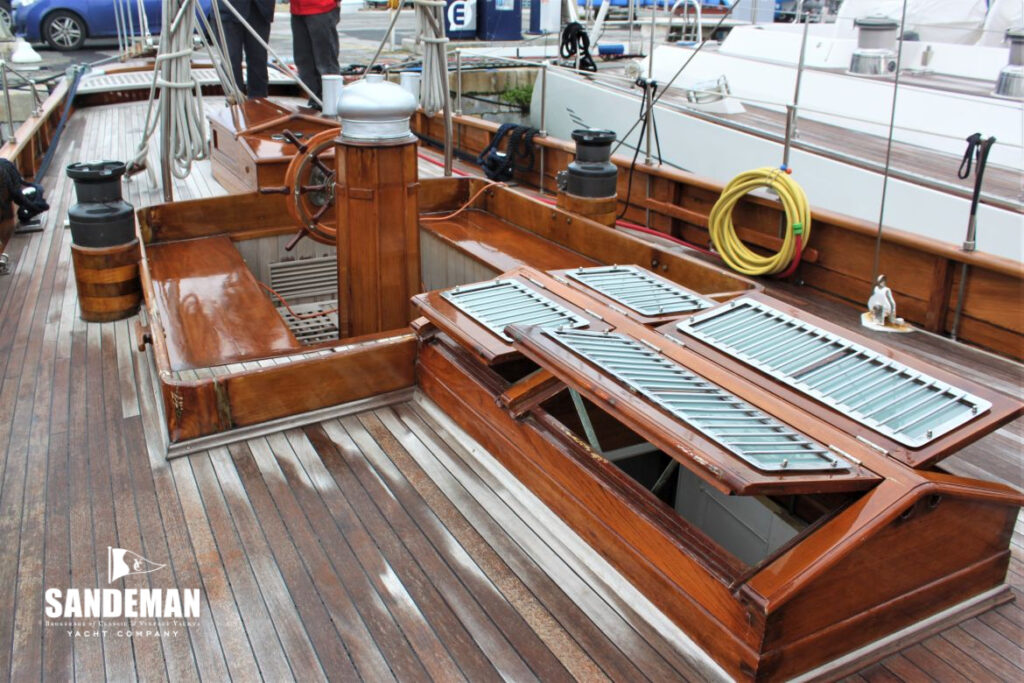 Joseph Soper is probably best remembered for the ‘Big Class’ cutter SATANITA, legendary for her speed, and “a fair turn of speed” is one of the properties noted by the yachting press of 1929 for this creation by Philip & Son of Dartmouth from another of his designs. ZEPHYR was moreover conceived as an able seagoing cruiser, and at 62 feet (20m) on deck she’s the perfect size for a family yacht of this vintage. In impressive condition and a considerable beauty, her forte is nevertheless in the sheer practicality of her layout, rig and accommodation, to which ownership by the same family for almost 50 years is testament enough. In 2019 ZEPHYR relaunched at a youthful 90-years-old after a major centreline restoration, and sporting a new mast.
