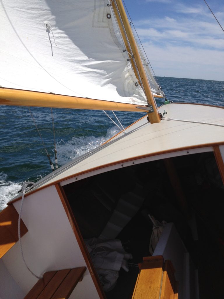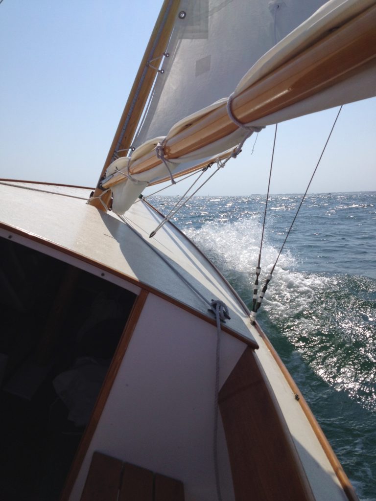 Adelare is one of only a few exact replicas of N.G. Herreshoff’s Alerion. The first time I saw Alerion at Mystic Seaport I thought she was the most beautiful boat I’d ever seen. 40+ years later I own her sister and in 109 years no one has ever been able to improve upon Captain Nat’s design. She is fast in light wind and even with two reefs her helm is light and well balanced.Already a member? Log in herePhotos