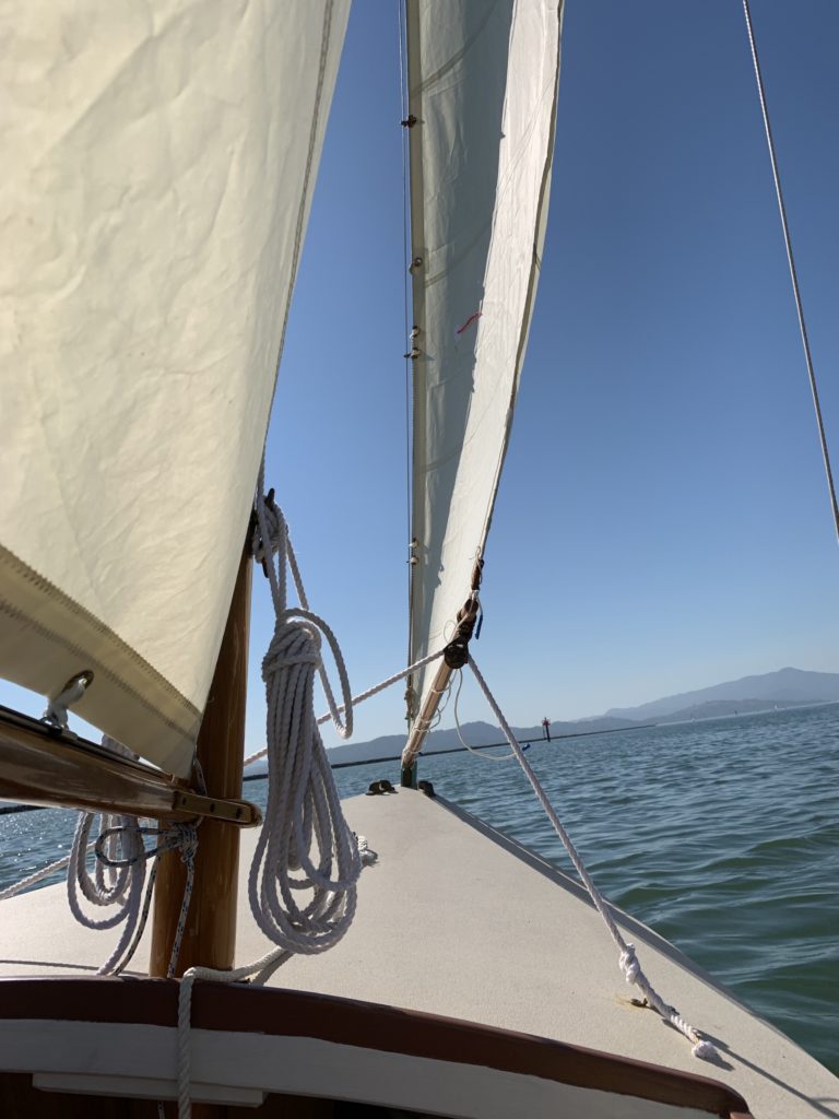 About my boat : 30 years ago I attended Fundamentals of Boatbuilding at Wooden Boat School, and fell in love with Nat Herreshoff’s Biscayne Bay 14. Years later I finally got down to building one, inspired by my kids discovering sailing through a local junior sailing program. It took me the best part of 3 years worth of evenings and weekends, but the build went smoothly. I made a few departures from the design specifications — her keel timber is laminated of doug fir instead of steam bent white oak, and I built her mast birdsmouth style instead of by the Herreshoff method. I launched her in April 2021 and have been having great fun sailing her in protected parts of San Francisco Bay. She is a delight to sail in a variety of conditions and easy to singlehand with her self tacking jib. I get the most wonderful compliments on her every time I take her out.Already a member? Log in herePhotos
