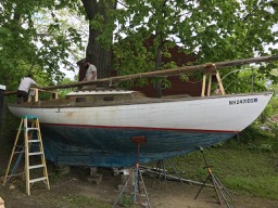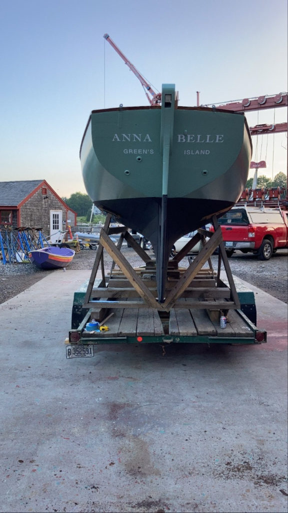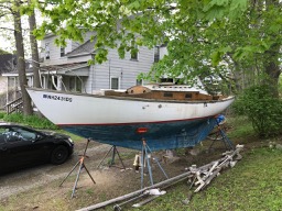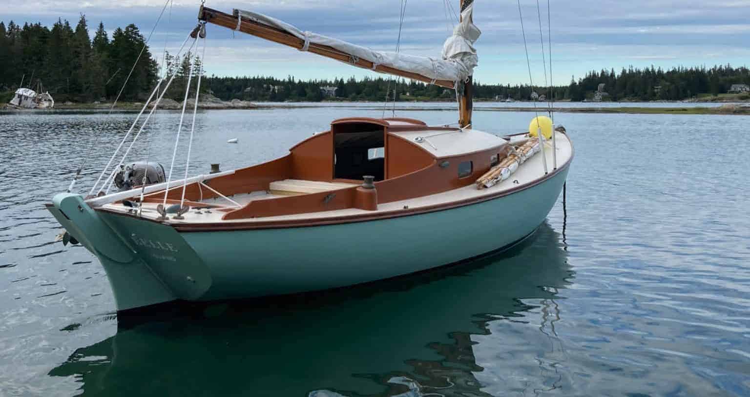 I discovered ANNA BELLE on the hard in Portsmouth, New Hampshire, during an aimless night of scrolling through the wooden boat classified ads. A phone call revealed that the $1,000 asking price had been reduced to $0 for anyone willing to move the boat to a new home. Like most wooden boats offered with a low entrance fee, she ended up needing a fair amount of work after spending almost a decade out of the water. After quite a bit of new bottom planking, a fresh Dynel deck, and a refinished interior, she went back in the water last season.At 24′ she’s just big enough to carry a small cabin without looking out of proportion. But it’s roomy and comfortable for a group of four on a weekend cruise, or weeks on end if you’re alone.