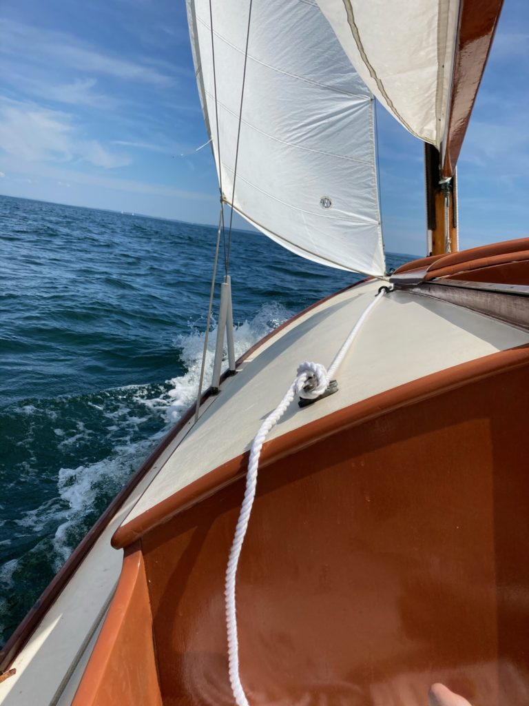 This boat is also small enough in footprint to be a very manageable boat both on the water and out, but big enough to feel like a real boat when moving through the water. A pickup truck can tow her from the boat yard and you can rig her over the course of a single lazy afternoon. While it’s usually more enjoyable to have the company of a few friends and a couple of dogs, sailing singlehanded is also very doable.