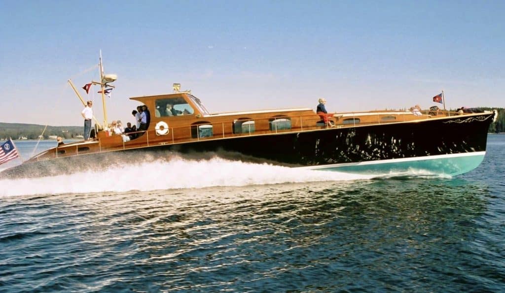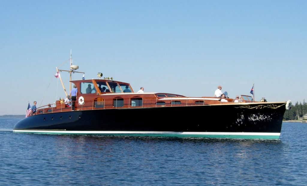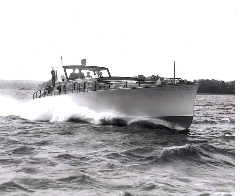APHRODITE was built by the Purdy Boat Company and launched in May of 1937 for Wall Street financier and later Ambassador to the Court of St. James, John Hay (Jock) Whitney of Manhasset, Long Island.Best described as a “Commuter Yacht”, this elegant and sleek 74-footer would each morning whisk Mr. Whitney from his large two-story boat house westward down Long Island Sound and thru the East River to his Wall Street office. During the 45 minute commute Mr. Whitney would go up to the forward cockpit and read the Herald Tribune to catch up on the day’s news.