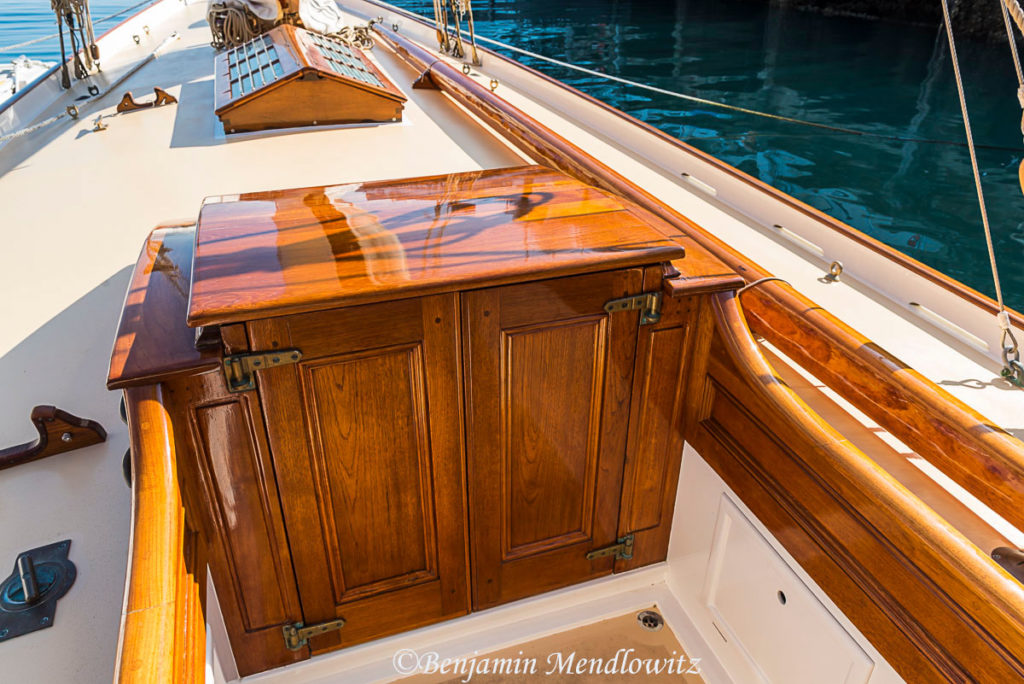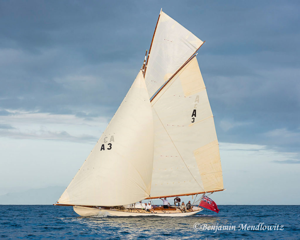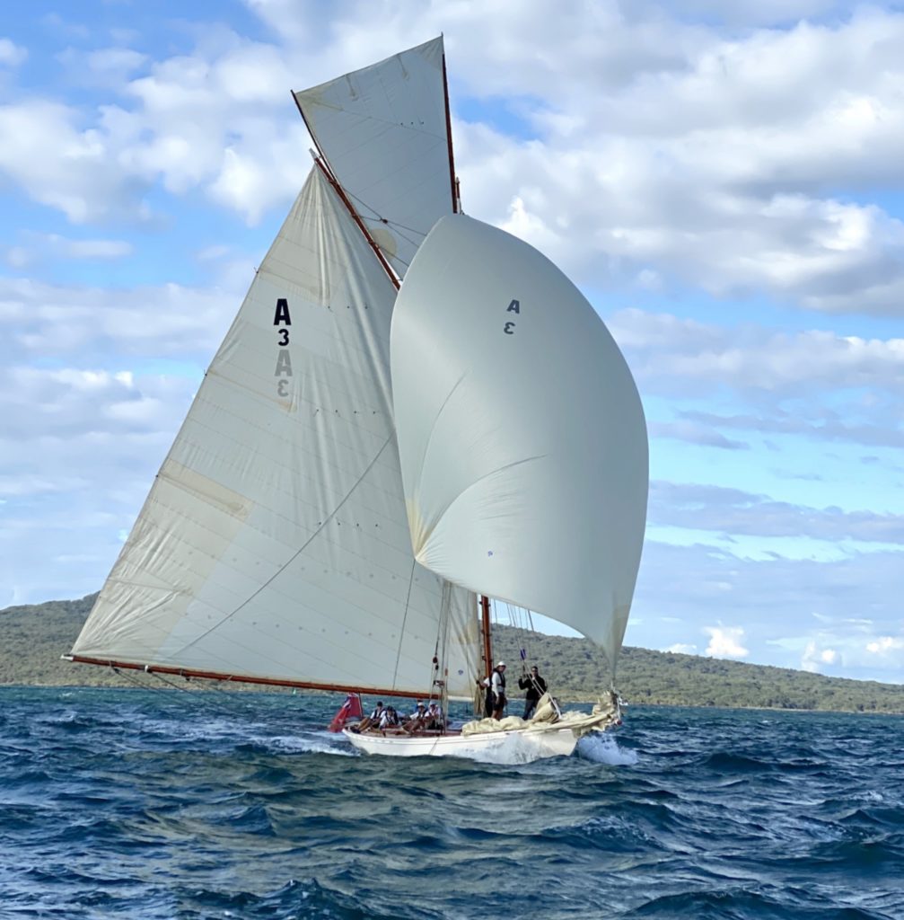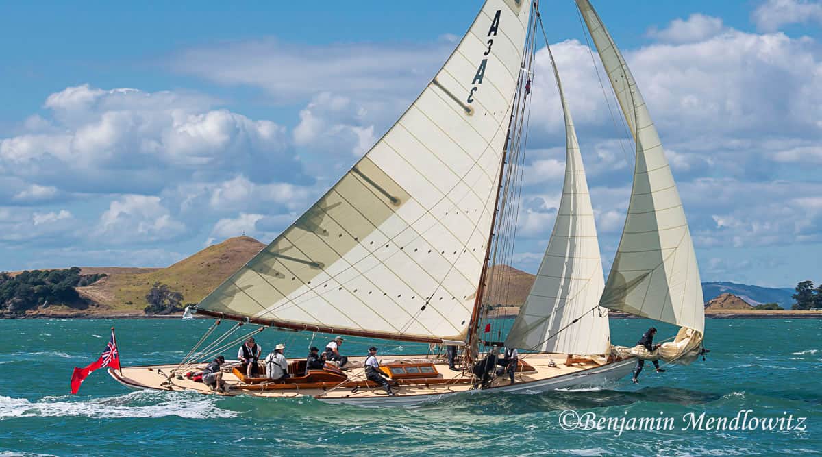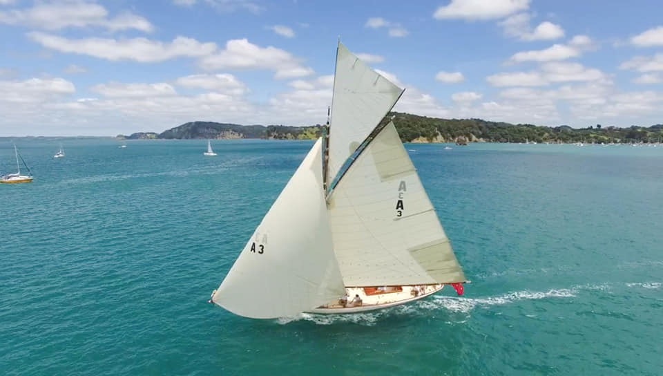 Ariki (meaning Chief or Leader in Maori) is arguably Arch Logan’s finest yacht and was the scratch yacht on the Waitemata from 1905-1938. Her design was a development of the Logan designed Rainbow of 1898 which in turn took her inspiration from the Royal Yacht Britannia.“One of Arch Logan’s lovely cutters, beautifully restored. A boat once seen, you’ll never forget—and if nearby you can easily see and appreciate her as she lies dockside near the Auckland Maritime Museum. Her flush deck makes for an exceptionally clean outward appearance disturbed only by an access companionway, a skylight, and the cockpit. Below, despite lack of standing headroom, the uncluttered symmetry still prevails in a marvelously open arrangement consisting of a pair of long, facing settee/berths and a tiny galley—all of it beautifully trimmed and finished.” – Maynard Bray