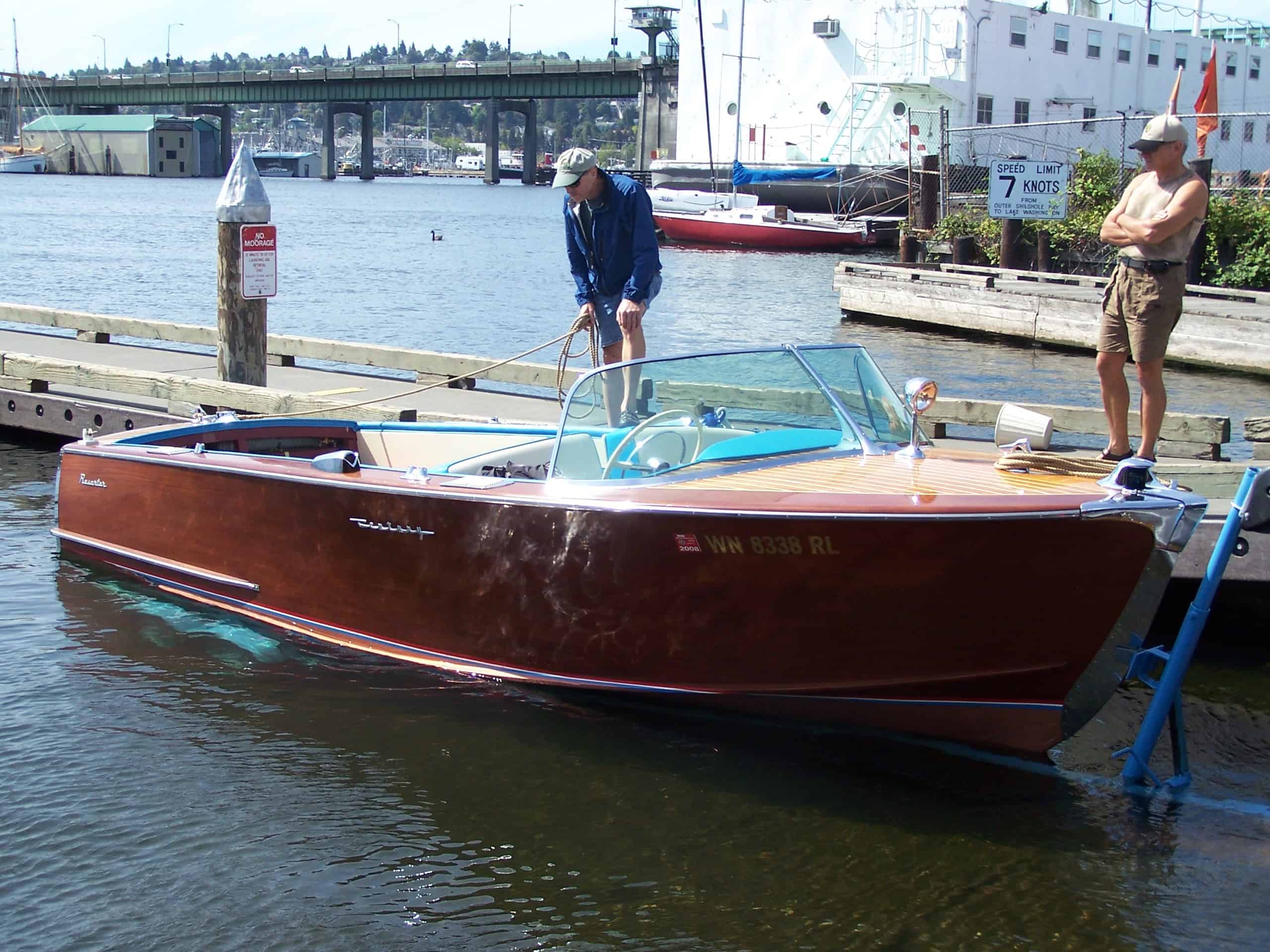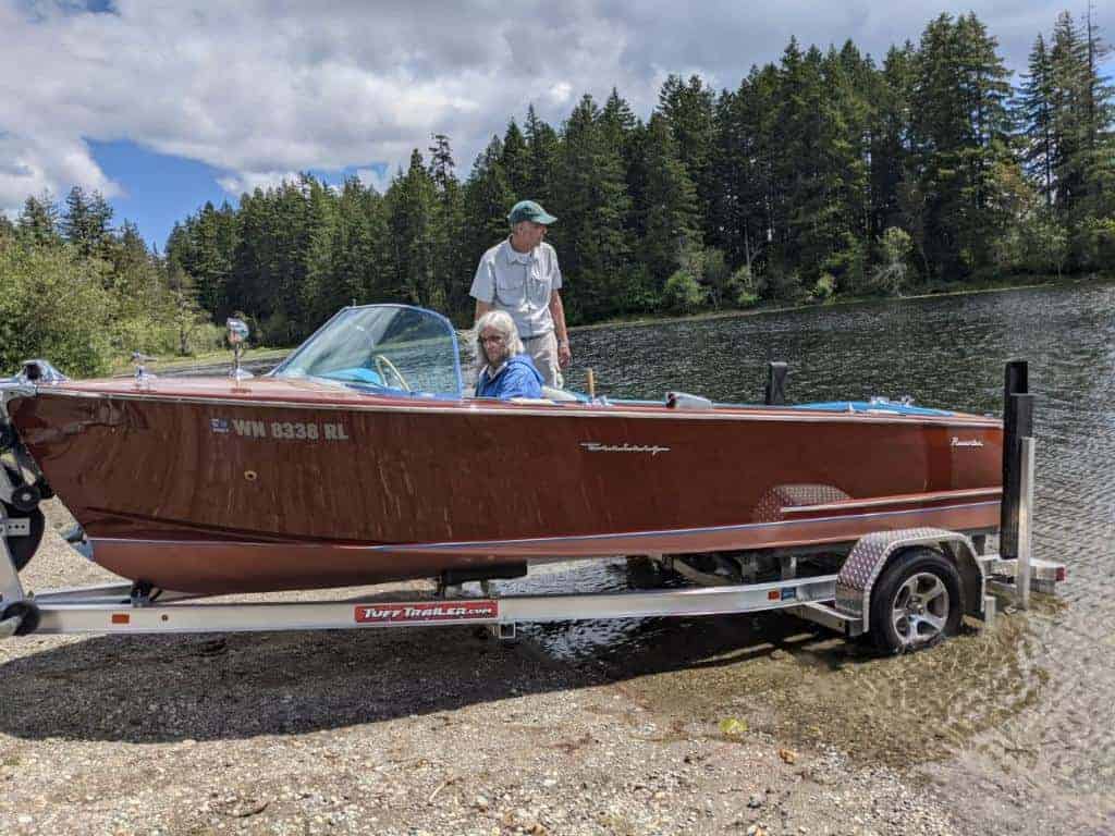 I purchased this 1956 Century Resorter for $500 in 1976 when I graduated from college. You could say it was a garage find in West Seattle as she was pretty gray and the upholstery close to not existent Apparently the owner trailered the boat from St. Paul, Minnesota and had several tire failures so he left it at his brother in laws. I have always enjoyed wood working and was ready for a project, little did I know it would take me over 40 years to get it back in the water. I joined the Pacific NW Chapter of ACBS in 2016 just before showing the boat at Mahogany & Merlot. After launching both bilge pumps ran continuously for 3 hours and we made sure to plug in a trickle charger that night to prevent draining the battery. After learning about what I should have done to prevent the bottom from leaking I started the second restoration 2 years ago to install a 5200 bottom and new hull planking. All the major work is done and 7 coats of varnish applied so we hope to have her back in the water this summer. We are looking forward to boating again and seeing everyone at ACBS meetings and shows. Thanks, Greg & Mary BatieAlready a member? Log in herePhotos
