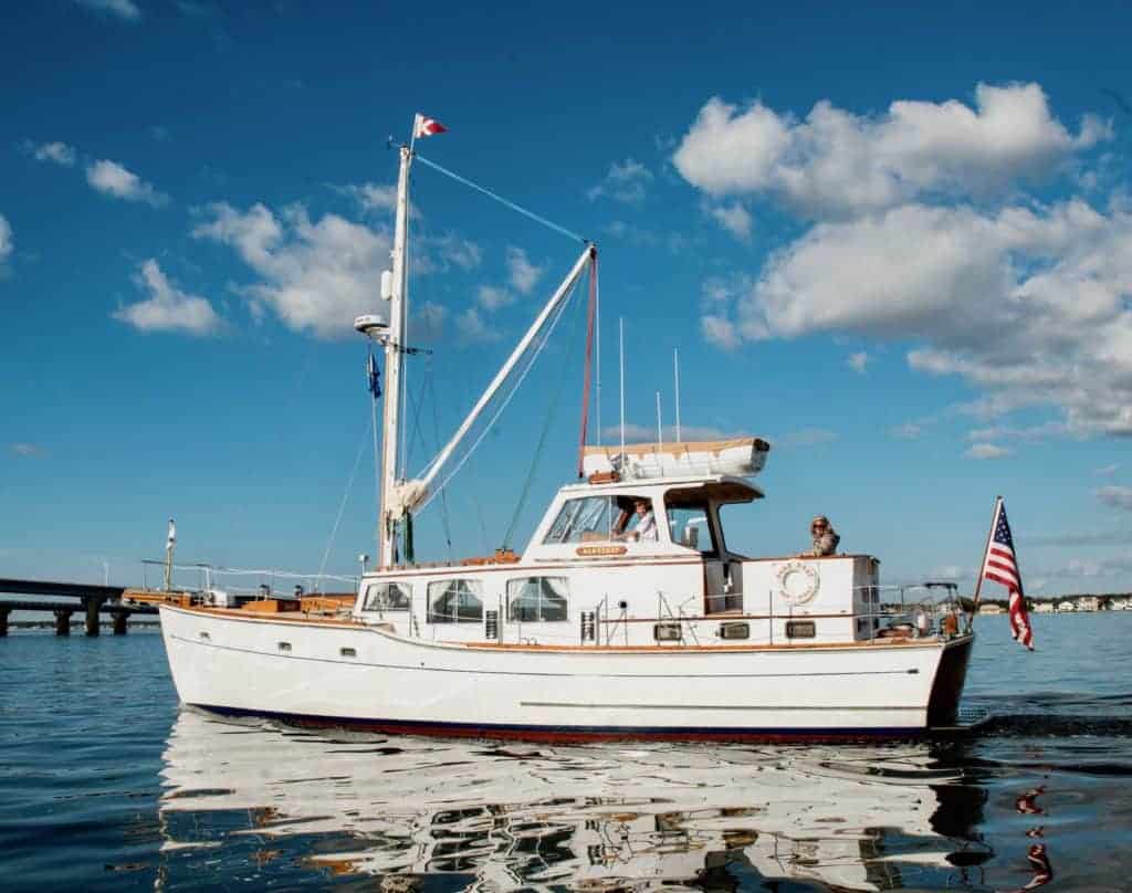 BARNEGAT is a 1962 Stonington 50. She was Designed by Henry Scheel and is one of the three 50ft hulls built by Stonington boat works in Stonington CT. She carries a steadying sail and likes to cruise at 8 knots. Her hull is constructed of mahogany on white oak frames. Presently BARNEGAT is owned by a syndicate who are in the middle of the first of a few winter restoration sessions to best prepare her for her next 60 years.