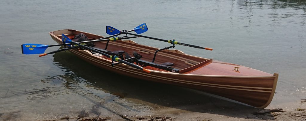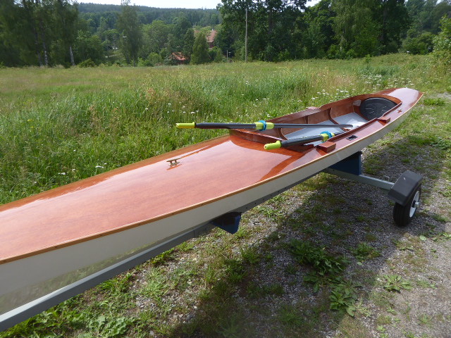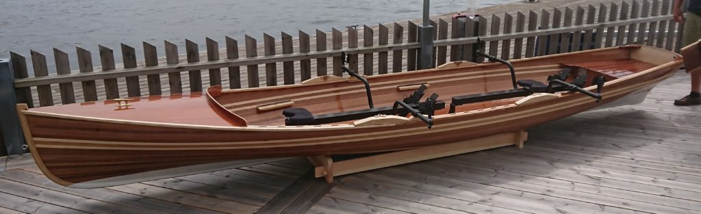 We build lifestyle boats for exercise, recreation or for some it just being a pearl by your dock. From the begining boatsize was limited to weight (max two persons needed to carry) the boat. Its mostly stripbuilt boats and these are epoxy laminated. We make the strips ourselvs. We also make exercise scullers in stich and glue technic. Coastal rowboats a CX1 type are on the strongback now in spruce and cedarwood.