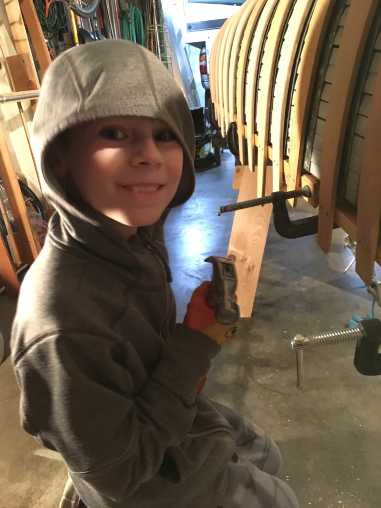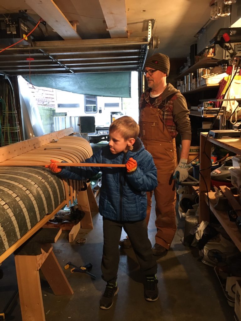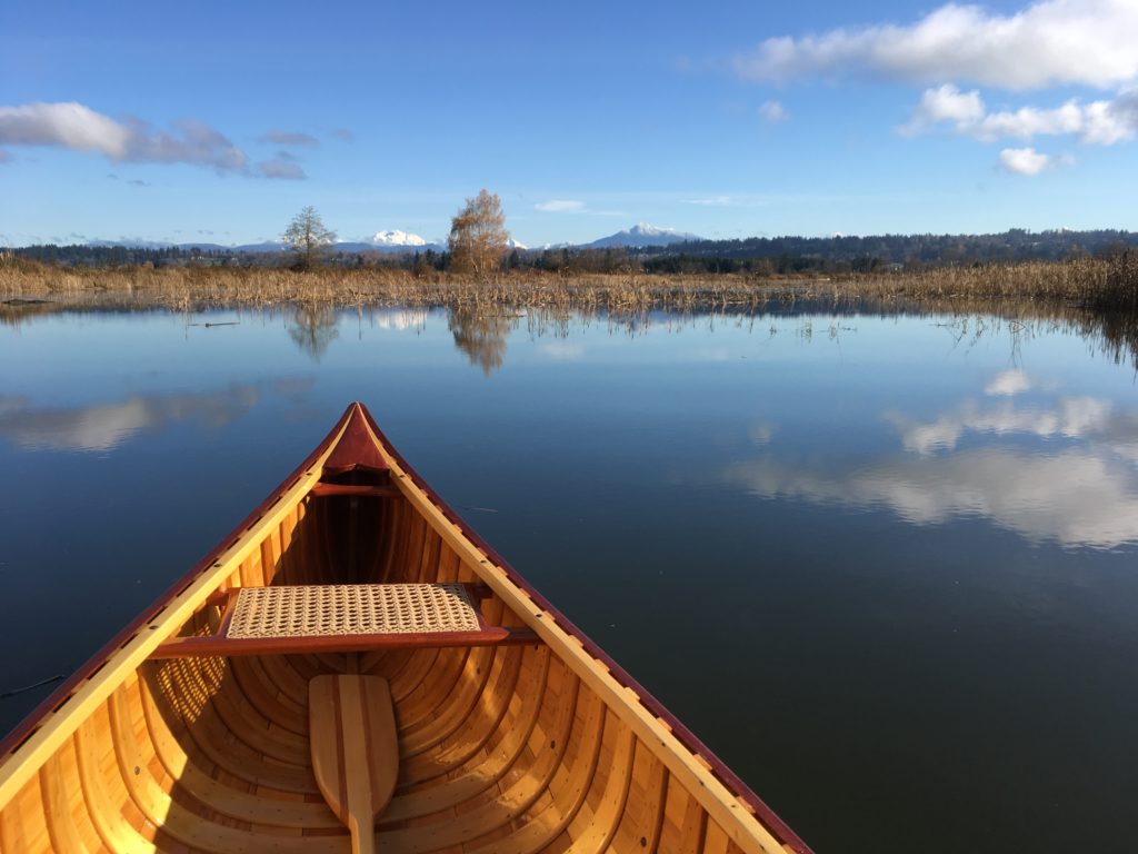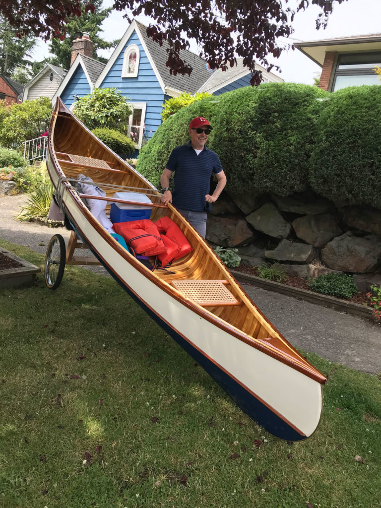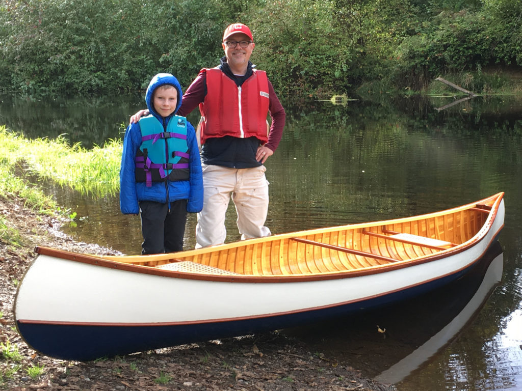 “Bean” is a traditionally built wood and canvas canoe, with white cedar ribs and planks, ash stems, spruce inwales, and mahogany decks, outwales, and thwarts. Guided by two excellent reference books, “Building the Maine Guide Canoe”, and “The Wood & Canvas Canoe” (by Stelmok and Thurlow), a first-time boat builder constructed her over a borrowed form with advice from local members of the Wooden Canoe Heritage Association and help from his 11-year-old son. The project made social distancing during winter and spring 2020 much more bearable. And the enjoyment continues as owner and family explore the many lakes and rivers around the beautiful Puget Sound area.Already a member? Log in herePhotos