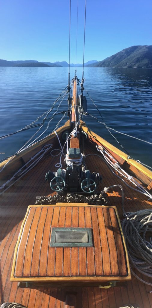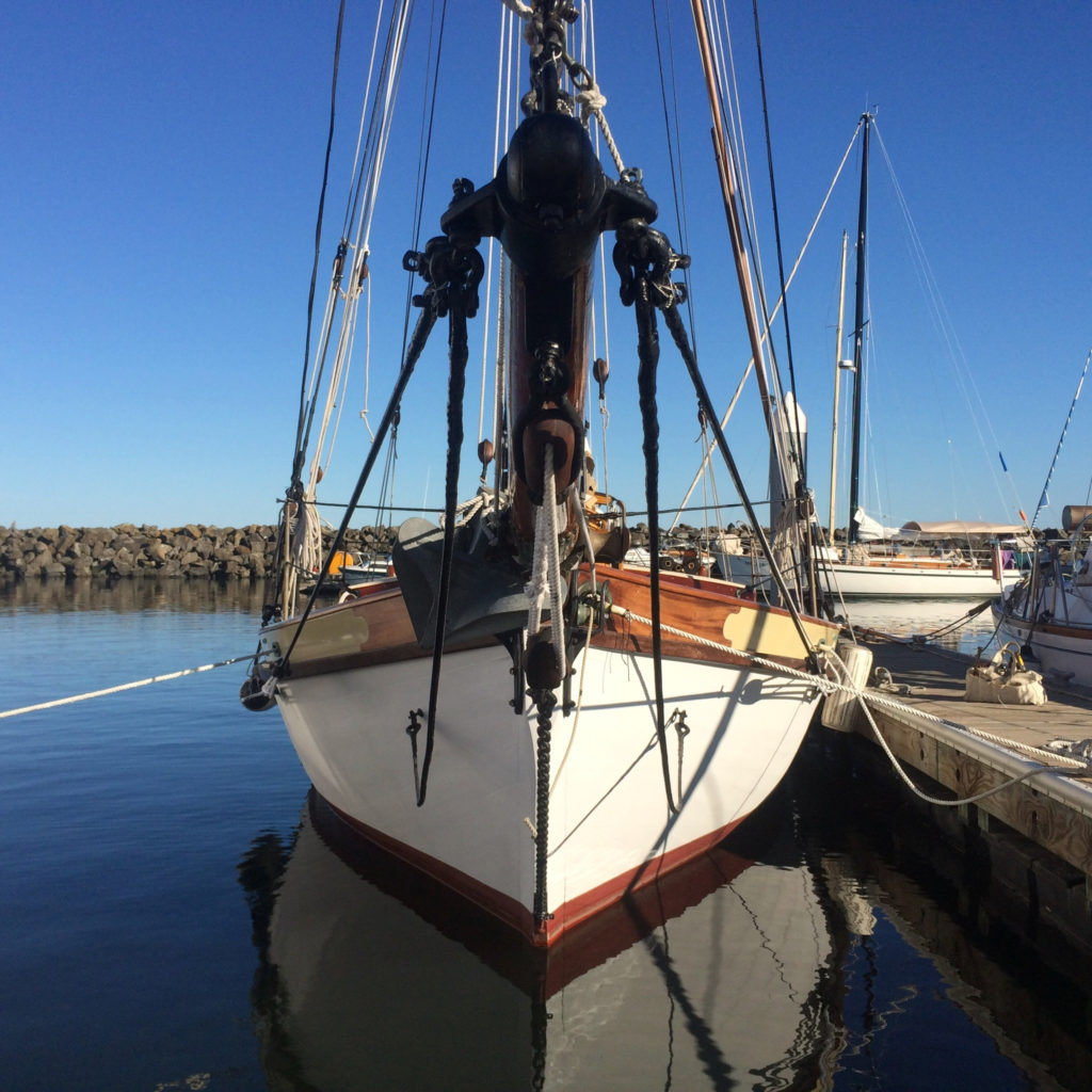 Originally named HellaBella she was built as a gaff cutter. Along the way someone shortened the bowsprit and boom and threw away the gaff, changed her rig to jib headed, and changed her name to Taruga. When she came to her present owner she was sadly in need and no doubt the name didn’t help. There was a little bronze plaque in a locker that stated she’d been named after a square rigged trading vessel, lost off the coast of Tunisia in the 1700s with all hands lost. Time for a new name, along with new keelbolts, frames, floor timbers, planks, deck, mast step, engine bed, systems, interior, cabin sides, bowsprit, gaff, stretch the boom, and new rig. Other than that she’s original right down to the restored 1920’s anchor windlass; and she sails much better as a gaffer. She spent WWII working as part of the Civil Maritime Patrol and took a family from the San Juans to the South Pacific and back in the 80s.Already a member? Log in herePhotos