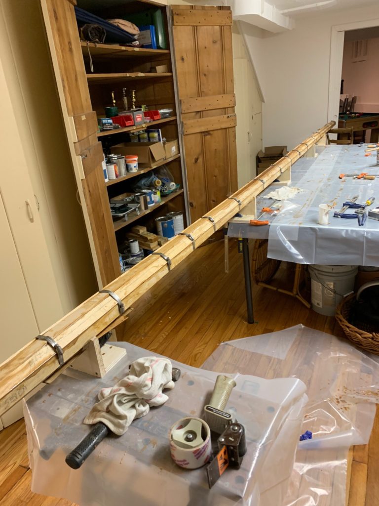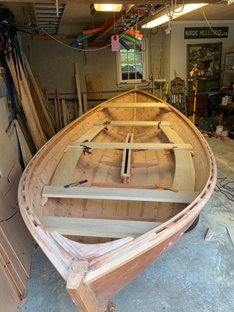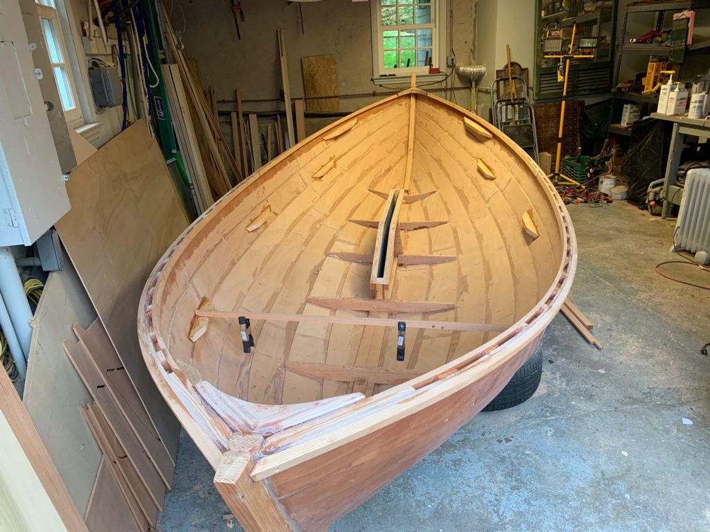 NOTE: Since the 2020 show, I converted my Balanced Lug rig to a Gunter Yawl rig in 2021. I have since switched back to the Balanced Lug Rig; it is the right choice for this boat in my opinion.The first time I laid eyes on a Caledonia Yawl was at the Wooden Boat Show in Mystic, Connecticut. I fell in love. A 19’ 6” hearty, open, double-ended yawl. I didn’t have to test drive it, or even get on board . . . just gazing at the boat from the dock was enough. As I drove home from Mystic that day a wave of emotion came over me . . . I am going to build that boat. Much like, I imagine, a calling a Priest receives from God . . . there was no scenario left where I wasn’t going to build that boat and I immediately bought a set of plans from Iain Oughtred, the boat’s designer. I am an average handy man around the house, with no fancy tools. I borrowed a portable Ryobi table saw, bought an electric planner, and relied heavily on my 25 year old Black & Decker skill saw, a local shop offered access to a band saw and thickness planner when needed. After 500 hours, 6 elapsed months, and one of the most fulfilling chapters of my life, I became the proud owner of this beautiful boat. And now I can tell you from experience what I saw from that dock, “she sails like a witch!!” (Chris Blake, Off Ceneter Harbor Crew).
