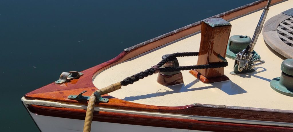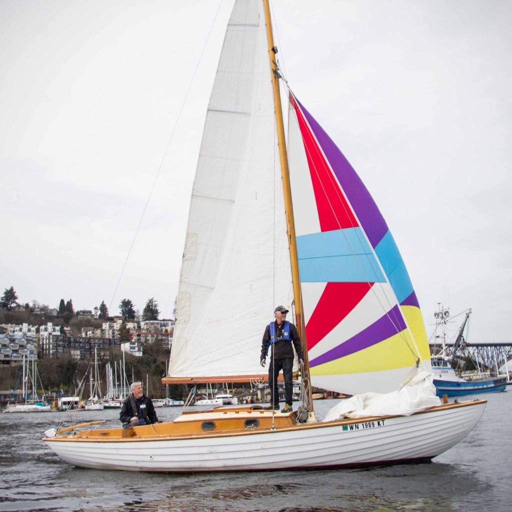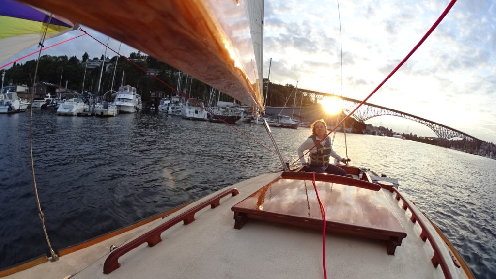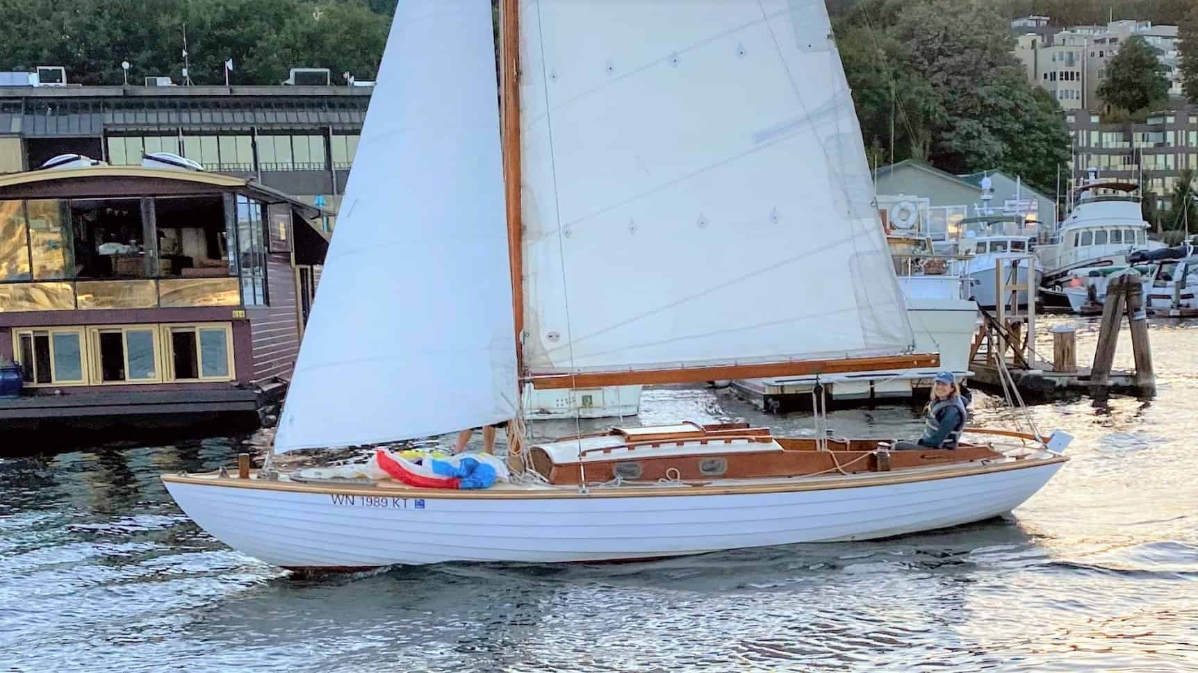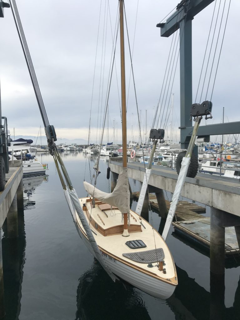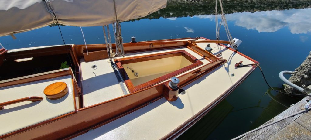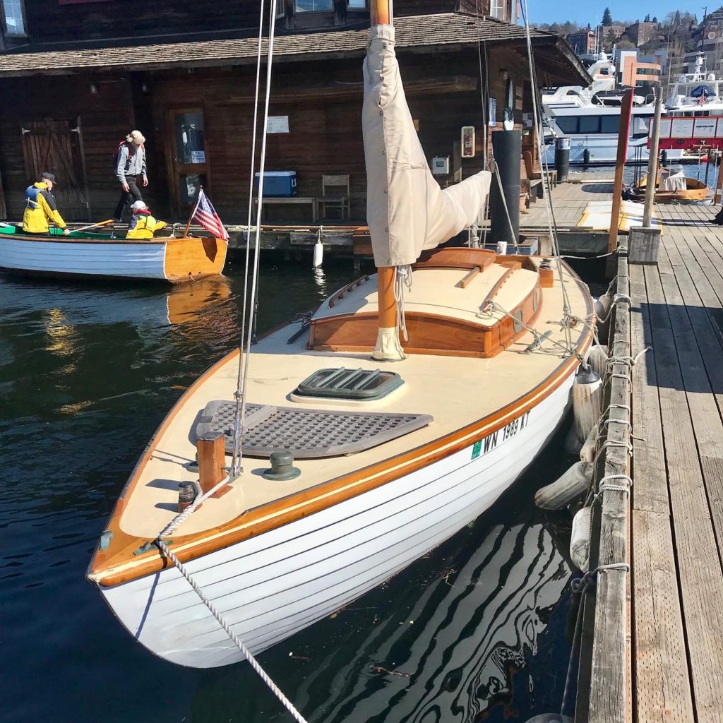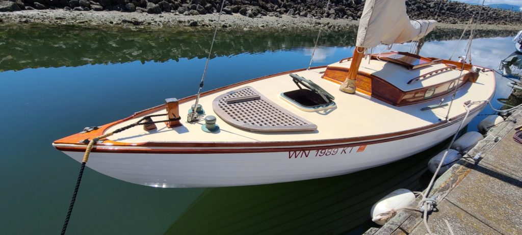 After many family adventures in the Salish Sea, Greg donated Chloe to The Center for Wooden Boats in Seattle in 2018. Brandt Faatz, then Executive Director at CWB, purchased Chloe. She was in fine condition but needed cosmetic work. After a haul-out to refresh bottom and topsides paint, Brandt stripped and refinished the mast in December 2019 using Awlwood. The house and comings were refinished as a spring 2020 lockdown project. Chloe sailed Seattle’s Lake Union through the summer of 2020 and relocated to Port Townsend in November. She now resides in Port Townsend’s Boat Haven.