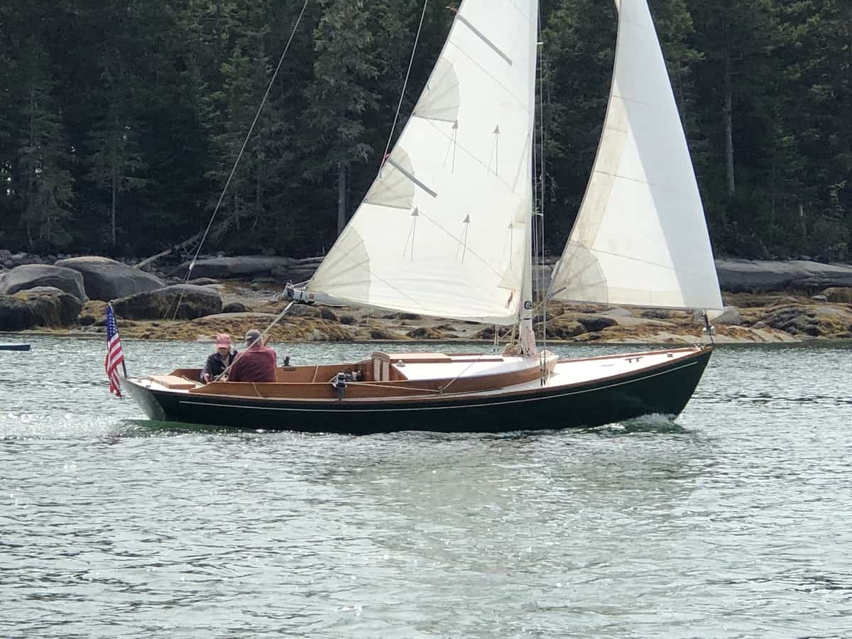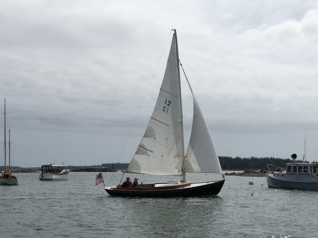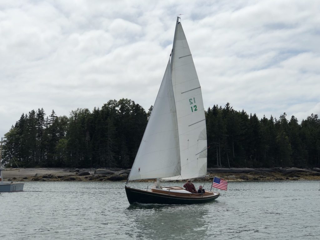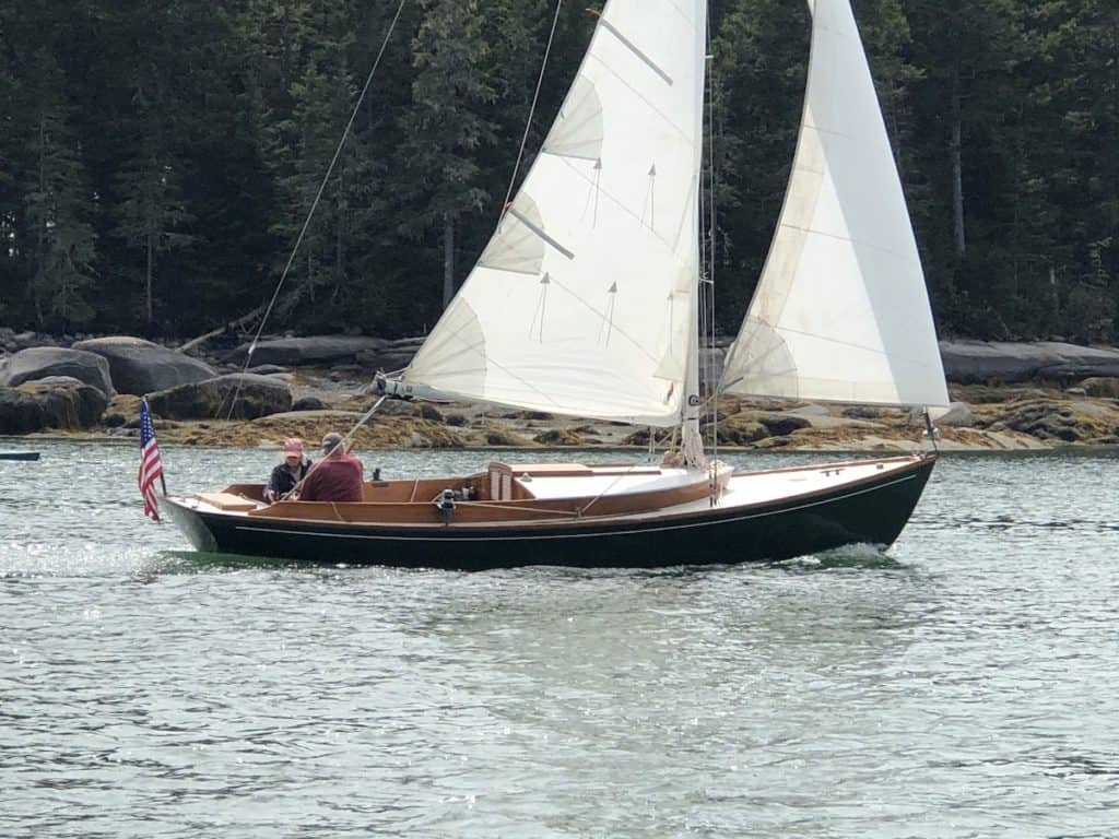 CLOVER, a Bridges Point 24, is a handsome and speedy daysailer designed by Joel White and built by Wade Dow. For many years we had the chance to sail with Joel aboard his sloop, ALISHA, the first BP built. In those years we learned to appreciate her ease of handling and lovely motion in the variety of conditions presented on both the Eggemoggin Reach and Jericho Bay, Joel’s home waters.Beyond their admirable sailing qualities, Bridges Point24s have large, comfortable cockpits and sufficient space below for gear stowage and the occasional nap. When one came up for sale locally, we jumped at the chance to own her.