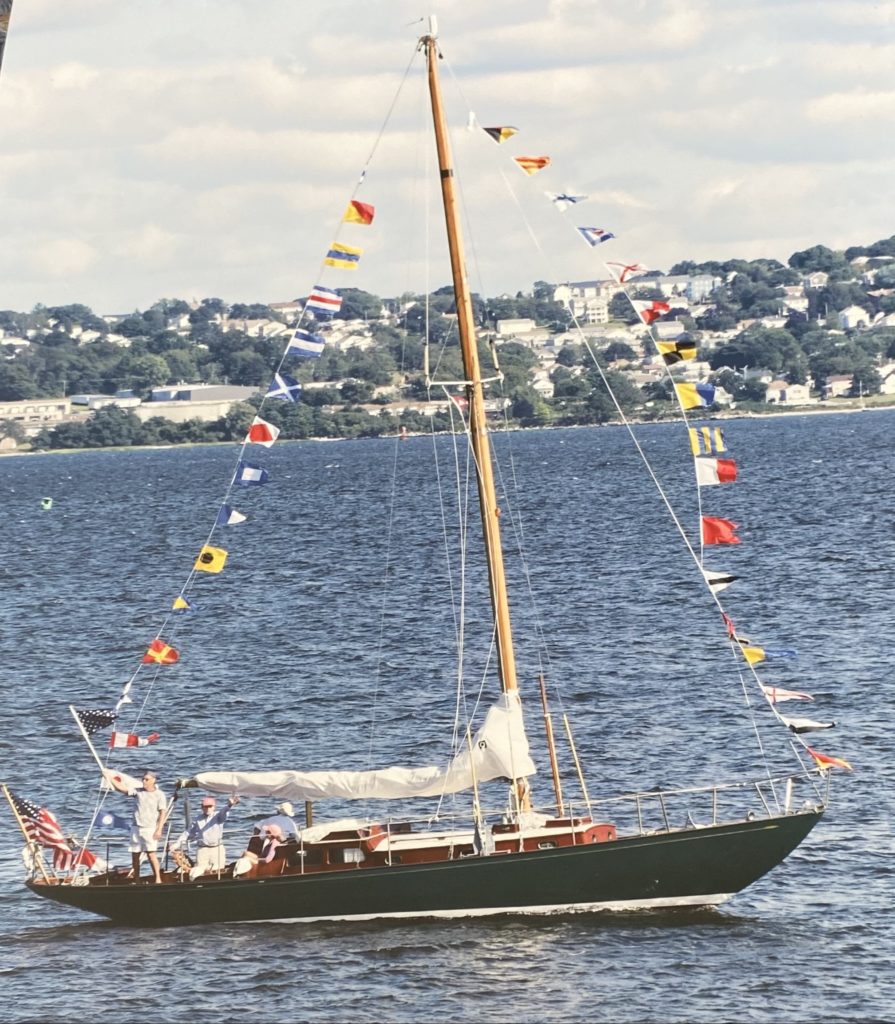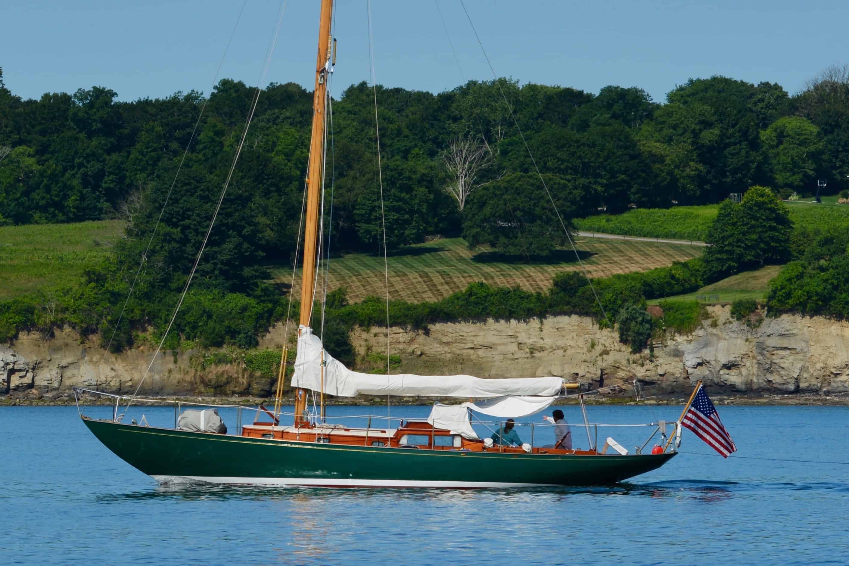 The Rhodes 27 class, designed by Phillip Rhodes, was started in 1939 for the members of Fisher’s Island Yacht Club to form a new racing/cruising class.Cloverleaf, originally called Melmar II built by A&R in 1955 for Frank Zurn successfully raced her on the Great Lakes for many years. In 1974, under a different ownership, Cloverleaf was stolen in Jamestown, Rhode Island and was recovered in Maryland. We have now lovingly owned Cloverleaf for 45 years and sail her in the southern New England waters from May through October. We raced her to Bermuda and many wooden boat regattas. We hope to keep Cloverleaf in our family for many years to come.