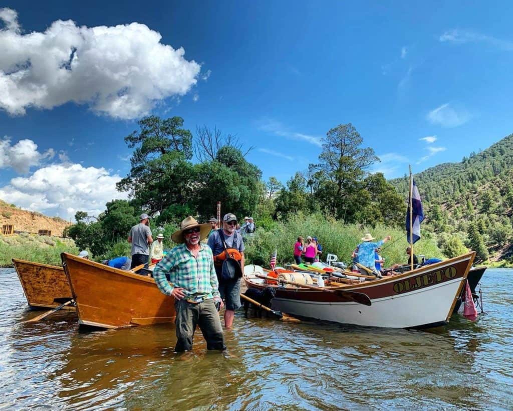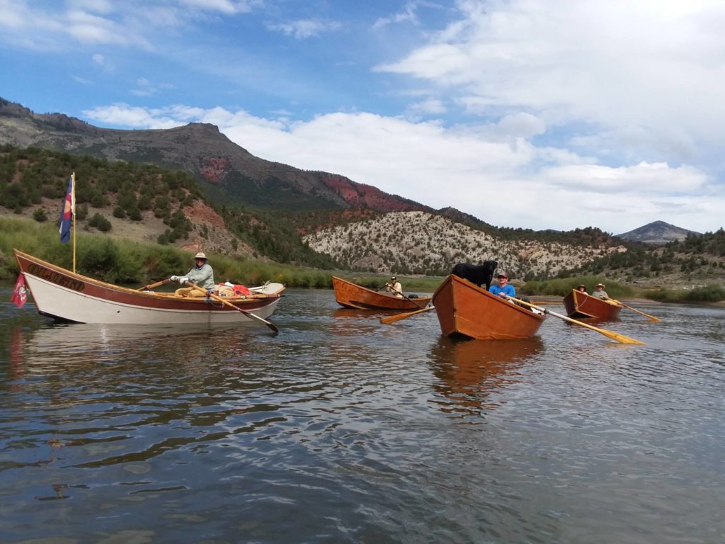 Gathering of wooden drift boats and dories to float the Upper Colorado River.