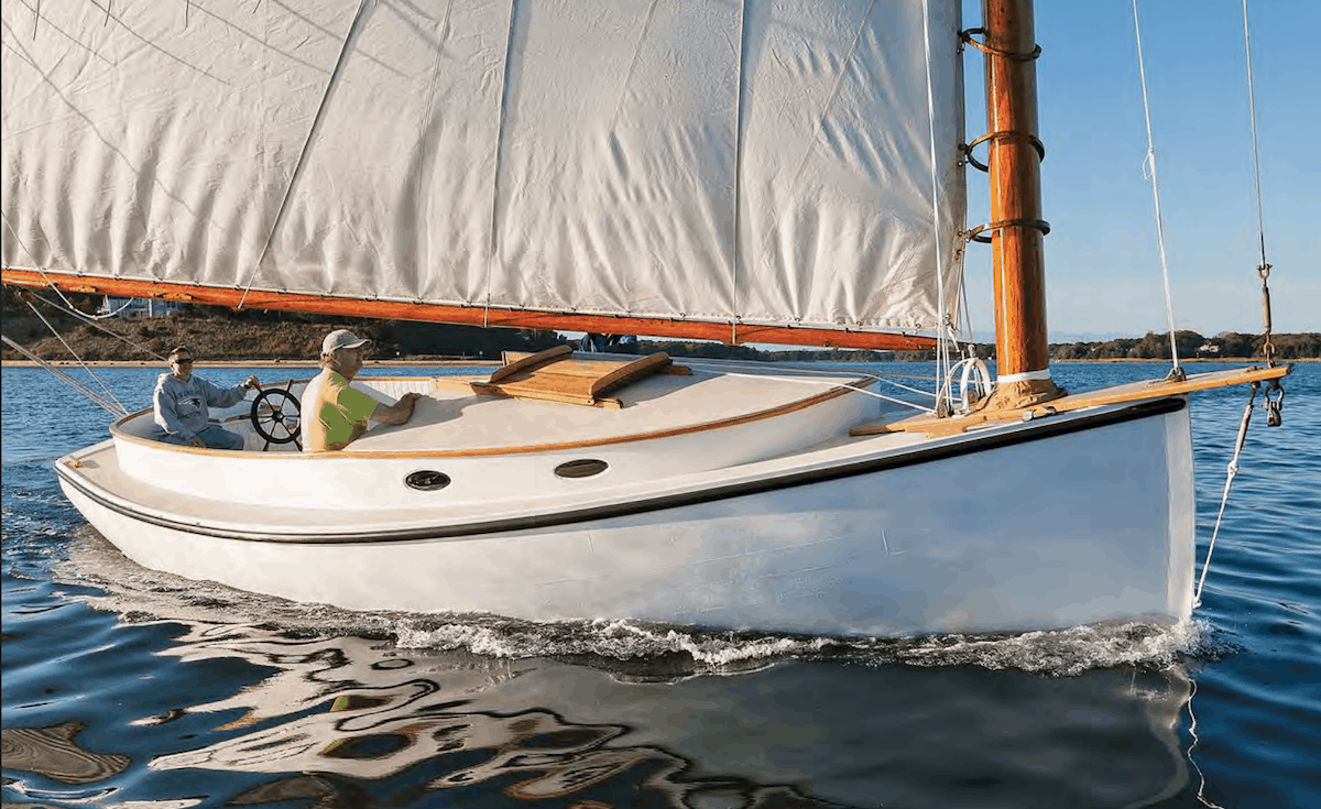 Conjurer is a 112 year old wooden plank on frame catboat. She was built by Horace Manley Crosby and launched into Cape Cod waters in May 1909.In 2009 she was purchased by her current owner and made a voyage to Arey’s Pond Boat Yard where she was restored over the following four years.