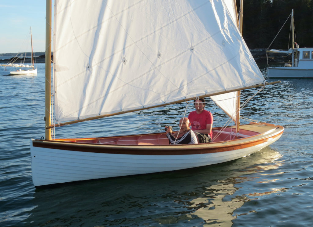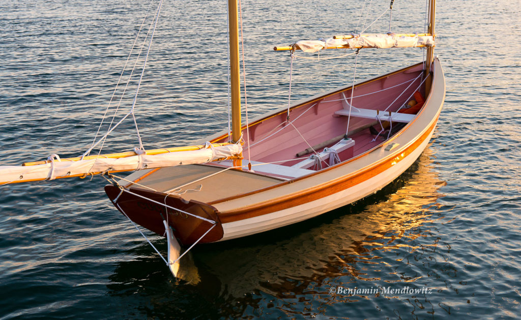 I built CUCKOO from pre-cut plywood planks I purchased from Doug Hylan after his shop built the first two boats of this design. I’d dreamed of owning a duplicate of N.G. Herreshoff’s COQUINA ever since looking at that evocative photo of her, with sails up, alongside his larger cat yawl, CLARA. The original drawings don’t include rigging details, so I’ll be forever grateful to Joe Youcha for loaning me one of the Coquina’s he built for an entire summer so that I could work out the best way to rig this design. By the time Doug began building, we had confidence we were on the right track. At first, I sailed COCKOO without ballast, but later, with a couple of hundred pounds of lead in the bilge, she stiffened noticeably and was far steadier to tramp around in. I love sailing her while sitting on the thwart just aft of the centerboard trunk where I’m completely clear of the main boom and can see all around. Steering is by pushing or pulling on a line connected to the rudder that runs all around the cockpit and can be reached even when you go forward to pick up the mooring. If you sit to windward and pull this steering line, the boat heads down; pushing makes her head up or tack. Hands off, there’s enough friction for a steady course. I never secure the main sheet; it’s ready to run in the event of a puff. CUCKOO is, after all, a shallow centerboarder that can be capsized.Already a member? Log in herePhotos