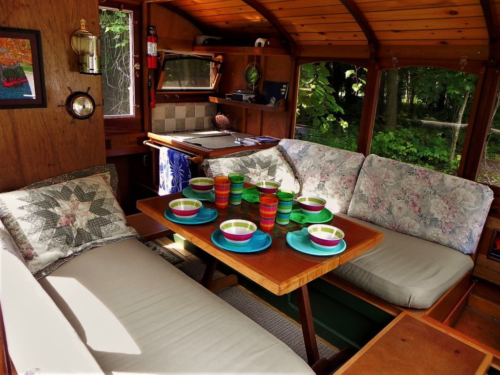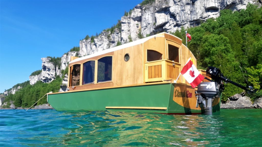 Tiny Houseboat. Our Dianne’s Rose is small but has all that we need for extended trip in the wilds of Georgian Bay and area but we have also taken here as far as the Texas Gulf Coast as she is easy to trailer!