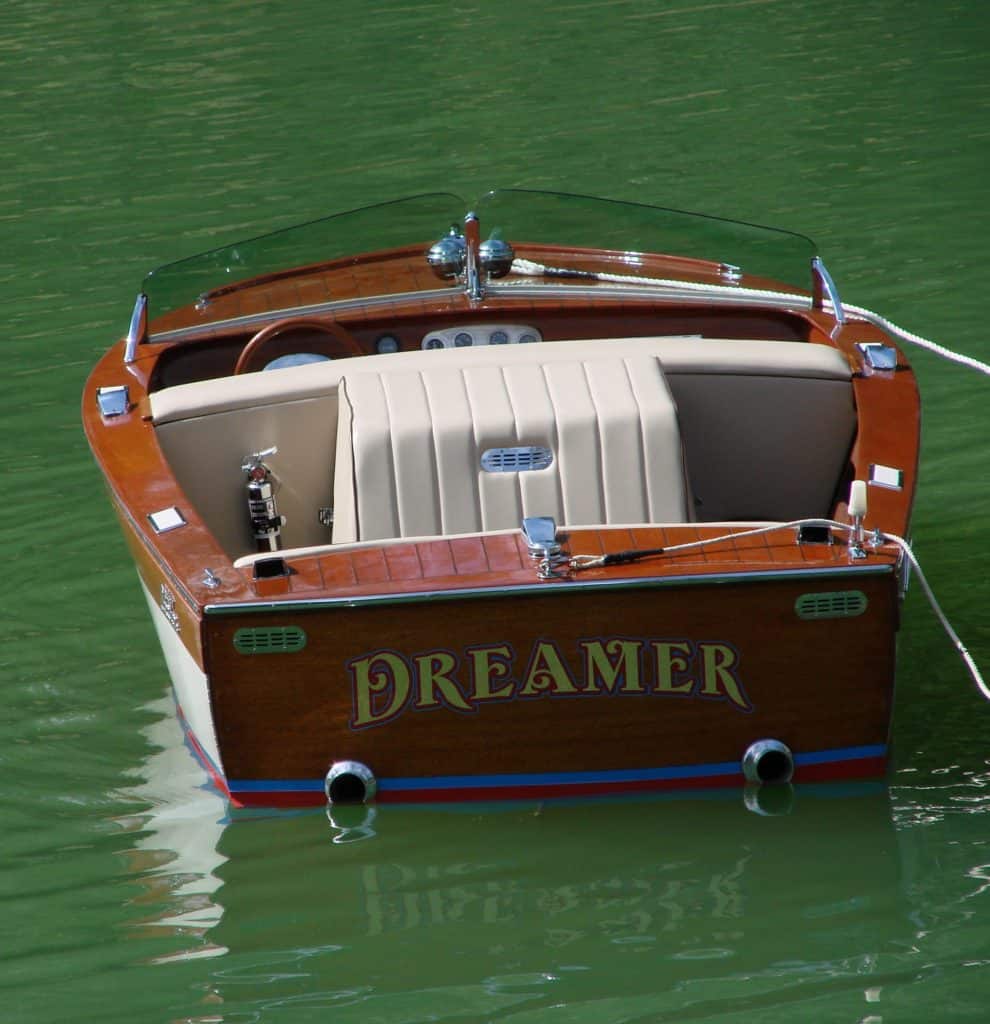 Dreamer is a 1961 Hallett Lakester, Length of 17.5 feet. Dreamer was custom-built for Dan Carrico by Fred and Kay Hallett Marine, which built race boats in 50s and 60s. Even after Fred Hallett passed away, Kay continued her passion remained an active official for many years in power boat racing.